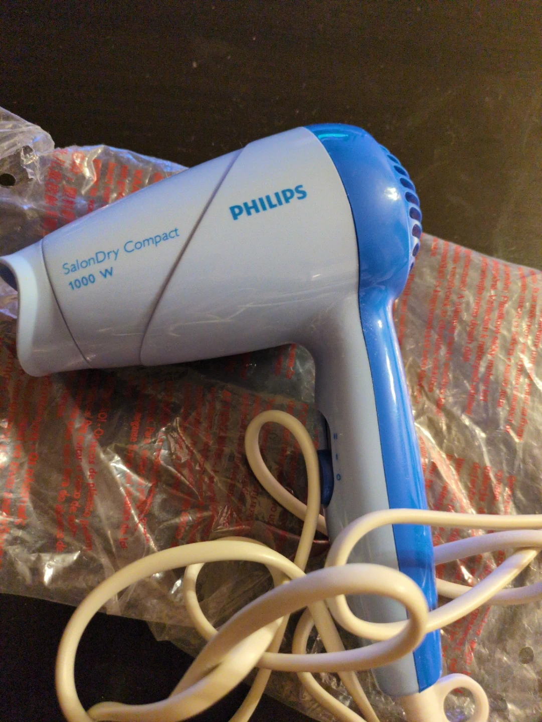 Selling a Philips SalonDry Compact 1000W hair dryer in excellent condition! It features gentle drying, accurate control with 2 flexible speeds, and easy compact storage. The box is included!