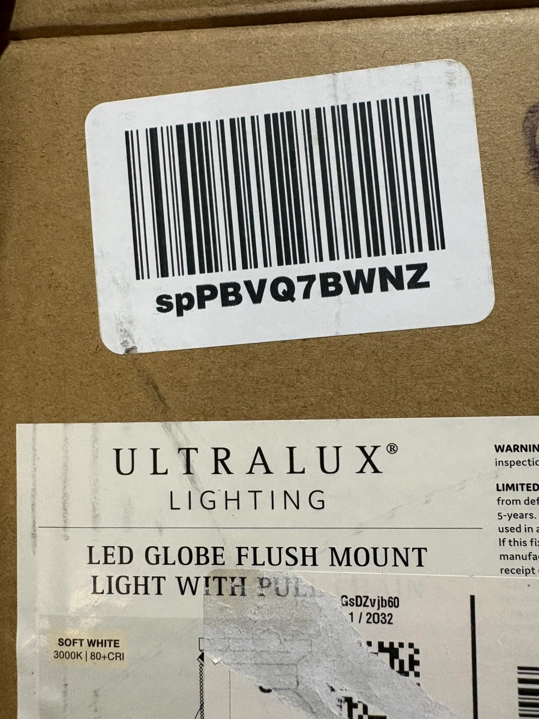 I'm selling an Ultralux Lighting LED Globe Flush Mount Light. It comes with the box and all components are included. It's a soft white light, 3000K | 80+ CRI. Great for adding a modern touch to any room!