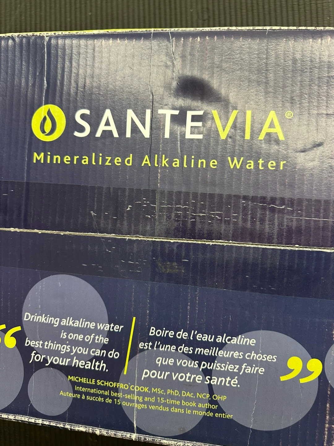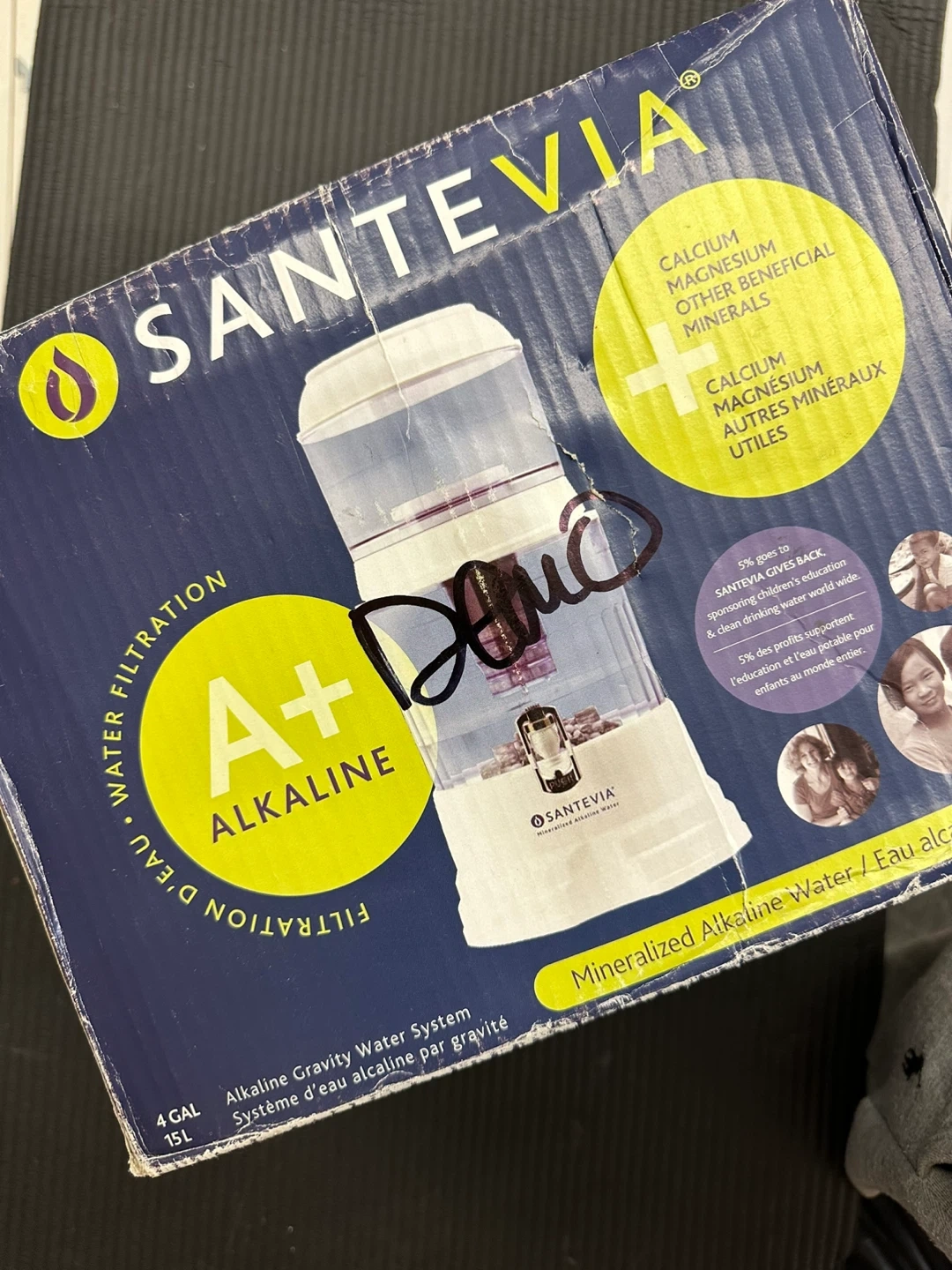 I'm selling a Santevia Alkaline Gravity Water System! It holds 4 gallons or 15 litres. It's designed for water filtration and produces mineralized alkaline water. It includes calcium, magnesium, and other beneficial minerals. It's an A+ alkaline system
