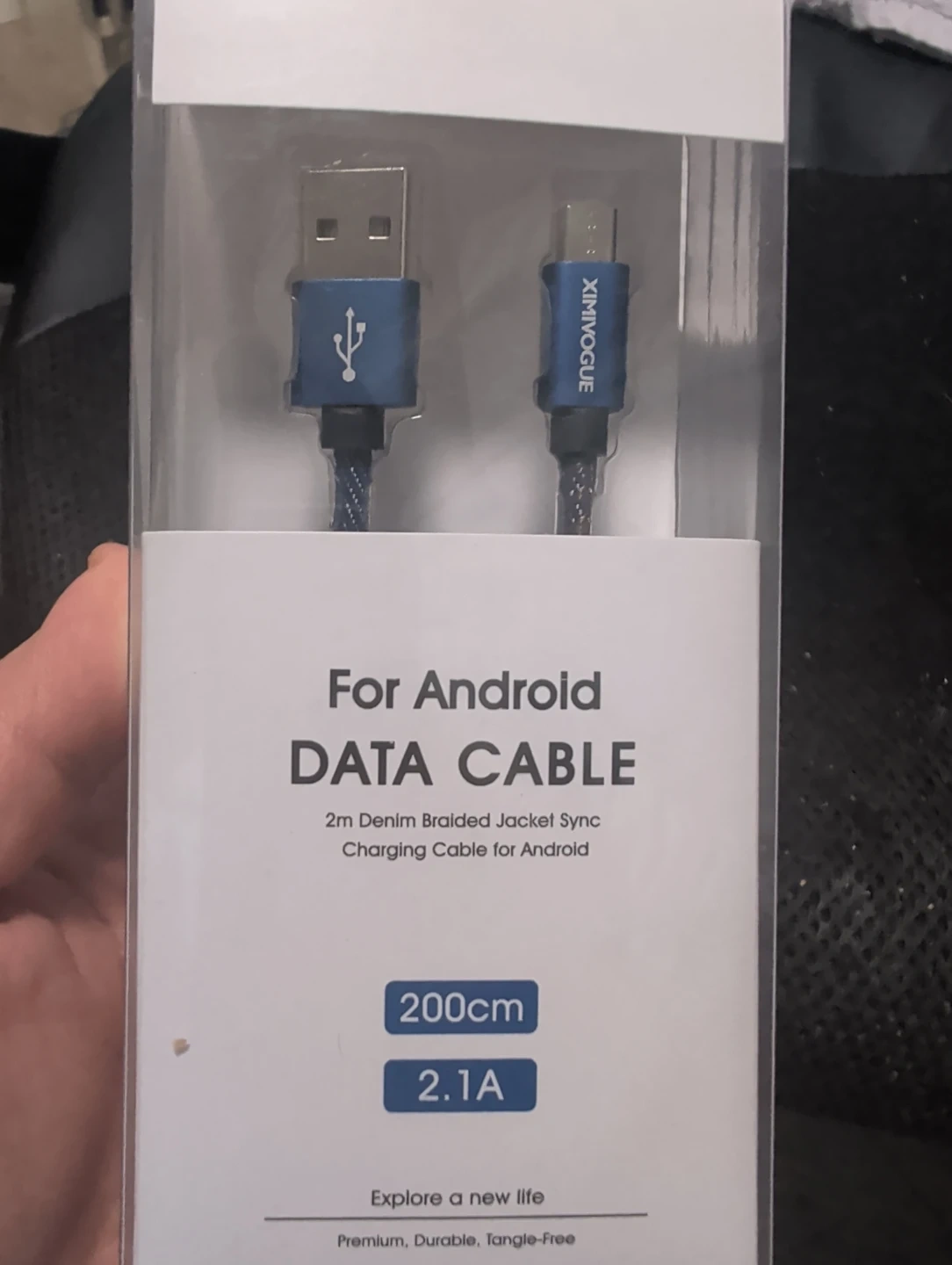 Selling a brand new 2m Denim Braided Jacket Sync Charging Cable for Android! It's 200cm long and supports 2.1A charging. The cable features an aluminium alloy case and a high-quality denim cable jacket that's both pliable and premium. Perfect for charging your mobile phone, tablet, or other devices equipped with a micro port