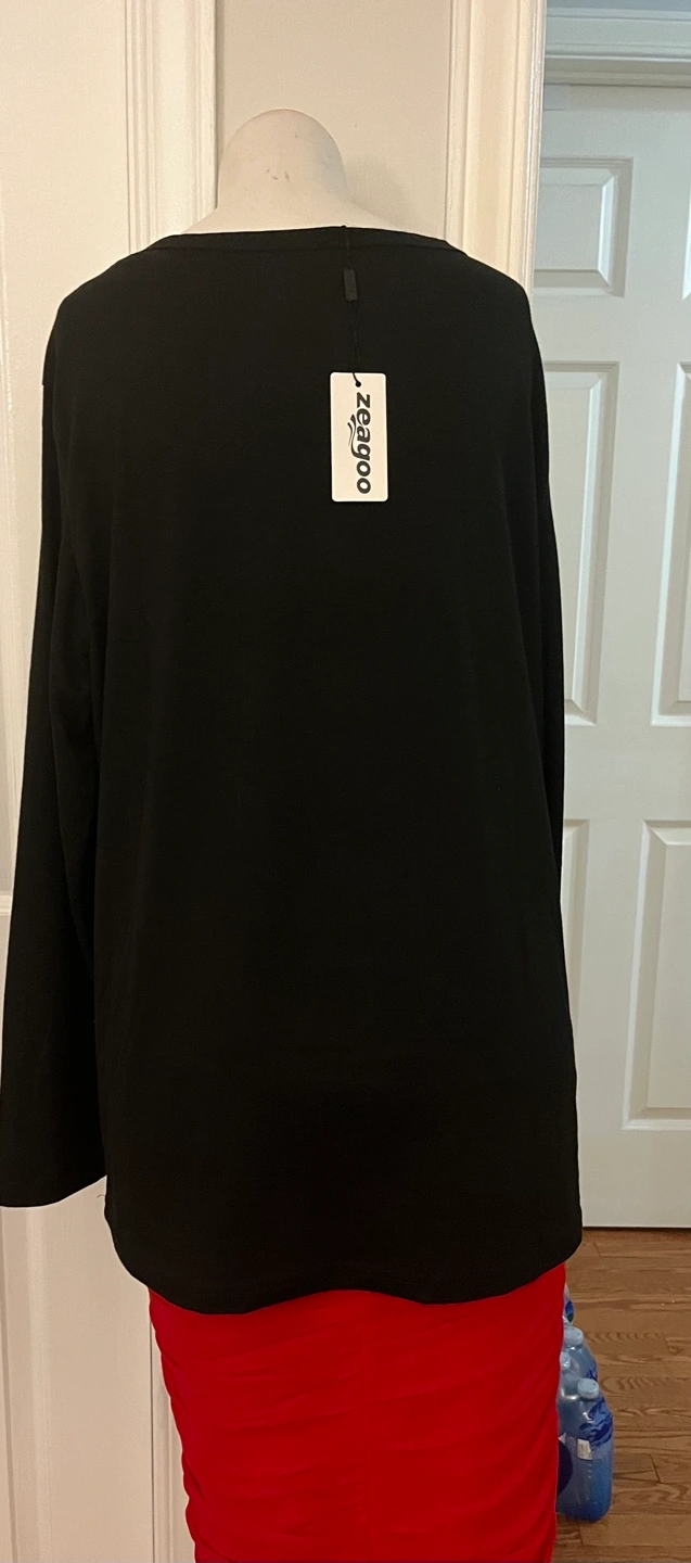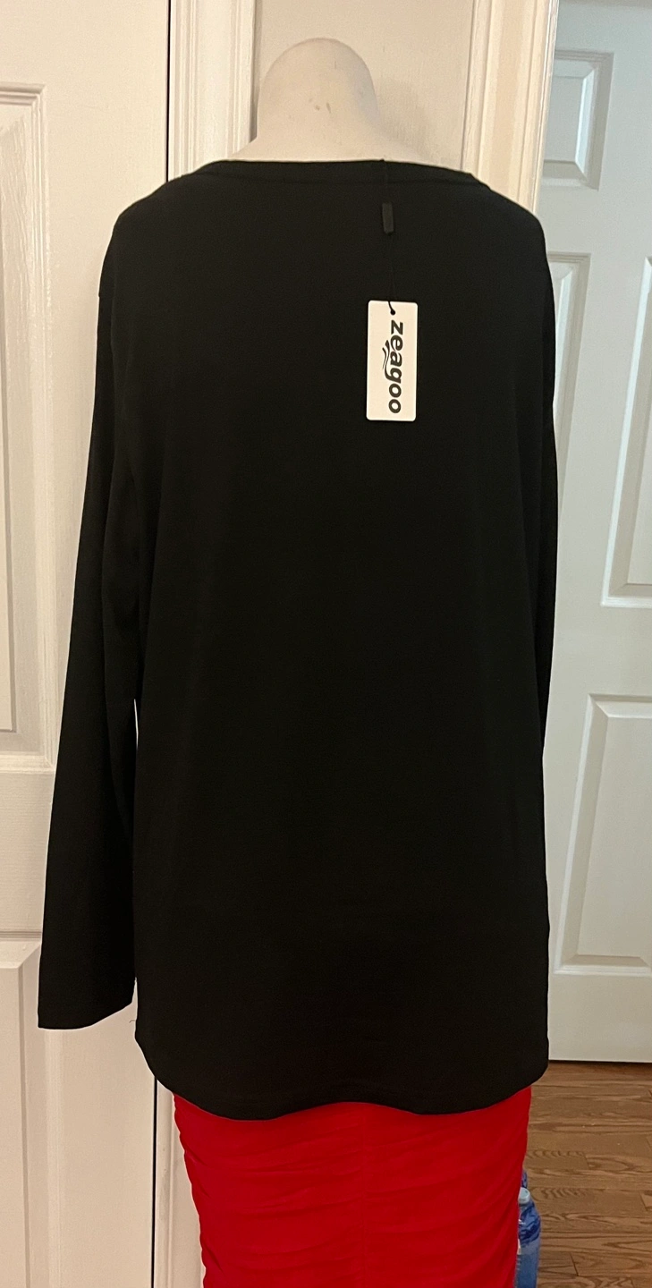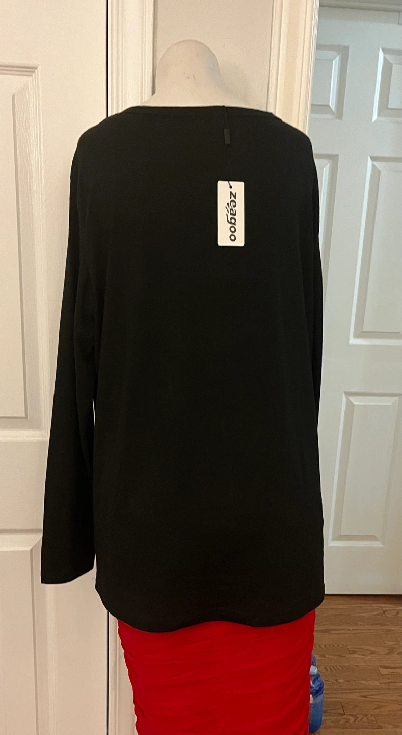 Here's a brand new Zeagoo long sleeve shirt in size XL! It's black and made of 76% polyester, 19% viscose, and 5% spandex