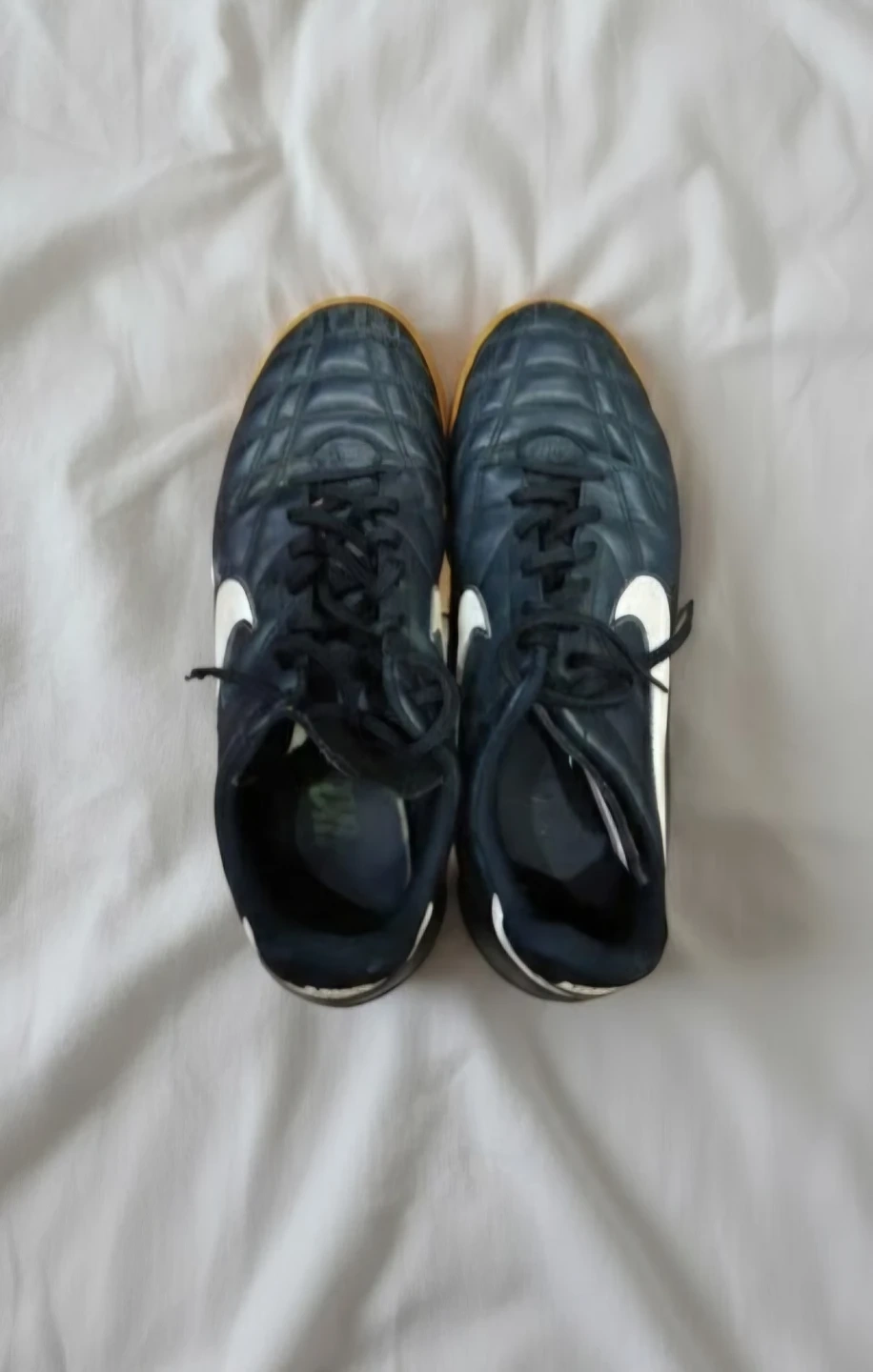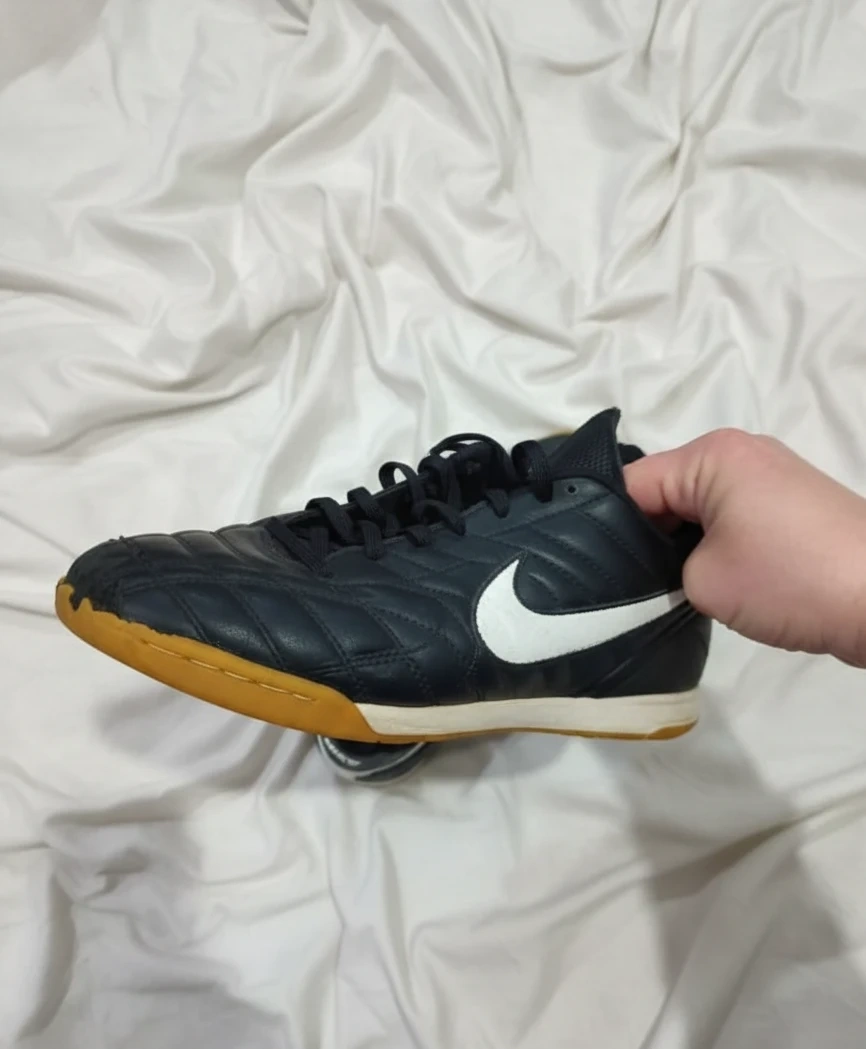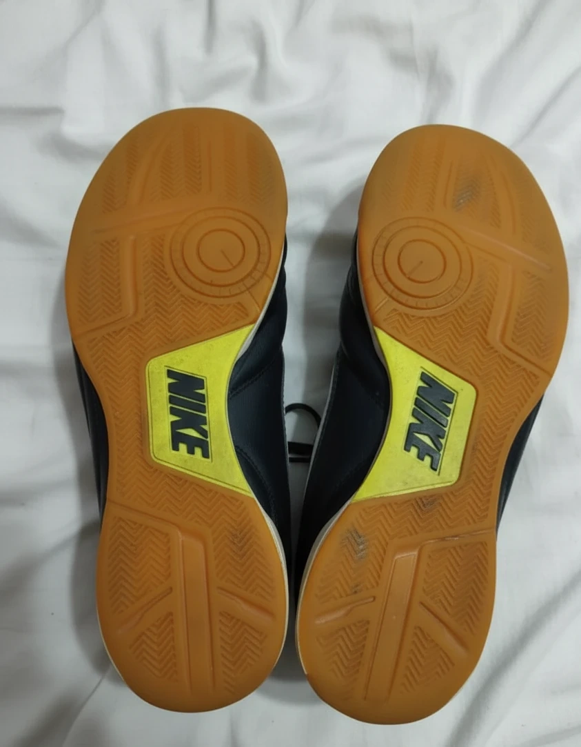 Selling a pair of used Nike Tiempo indoor soccer shoes. They show some signs of wear, as you can see in the photos, but still have plenty of life left for indoor play!