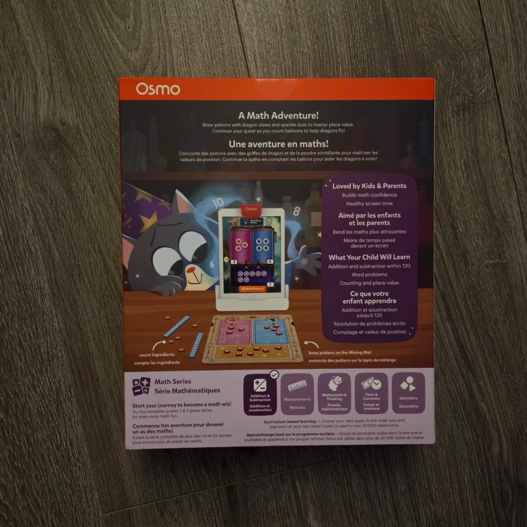 Selling a brand new Osmo Math Wizard and the Magical Workshop game! It's a fun curriculum-based way for kids aged 6-8 years old (Grades 1&2) to learn addition and subtraction. The box includes: