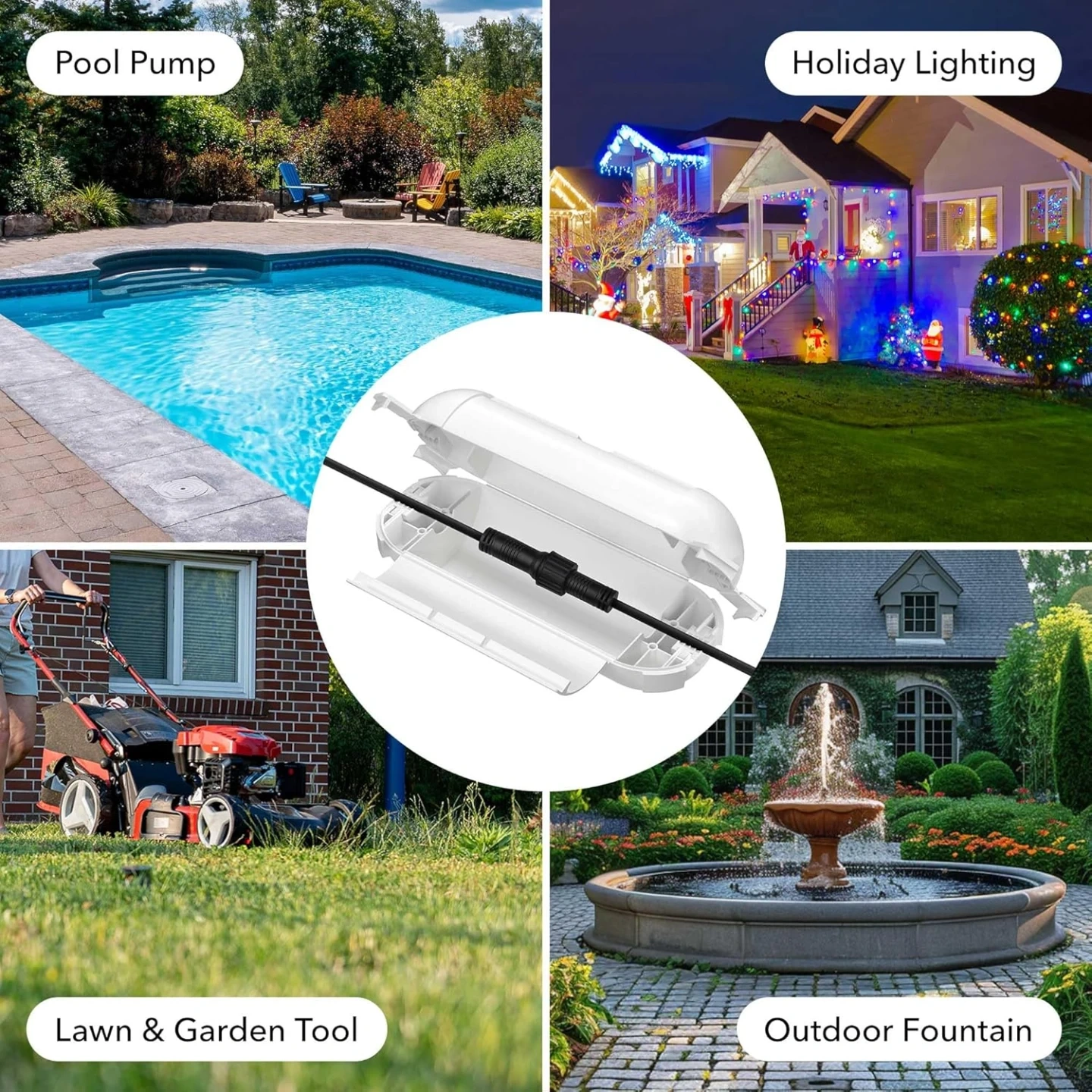 [3 Pack] Outdoor Extension Cord Safety Cover with Waterproof Seal, Weatherproof Electrical Connection Box to Protect Outdoor Outlet, Plug, Socket, Christmas Holiday Decoration Light, White