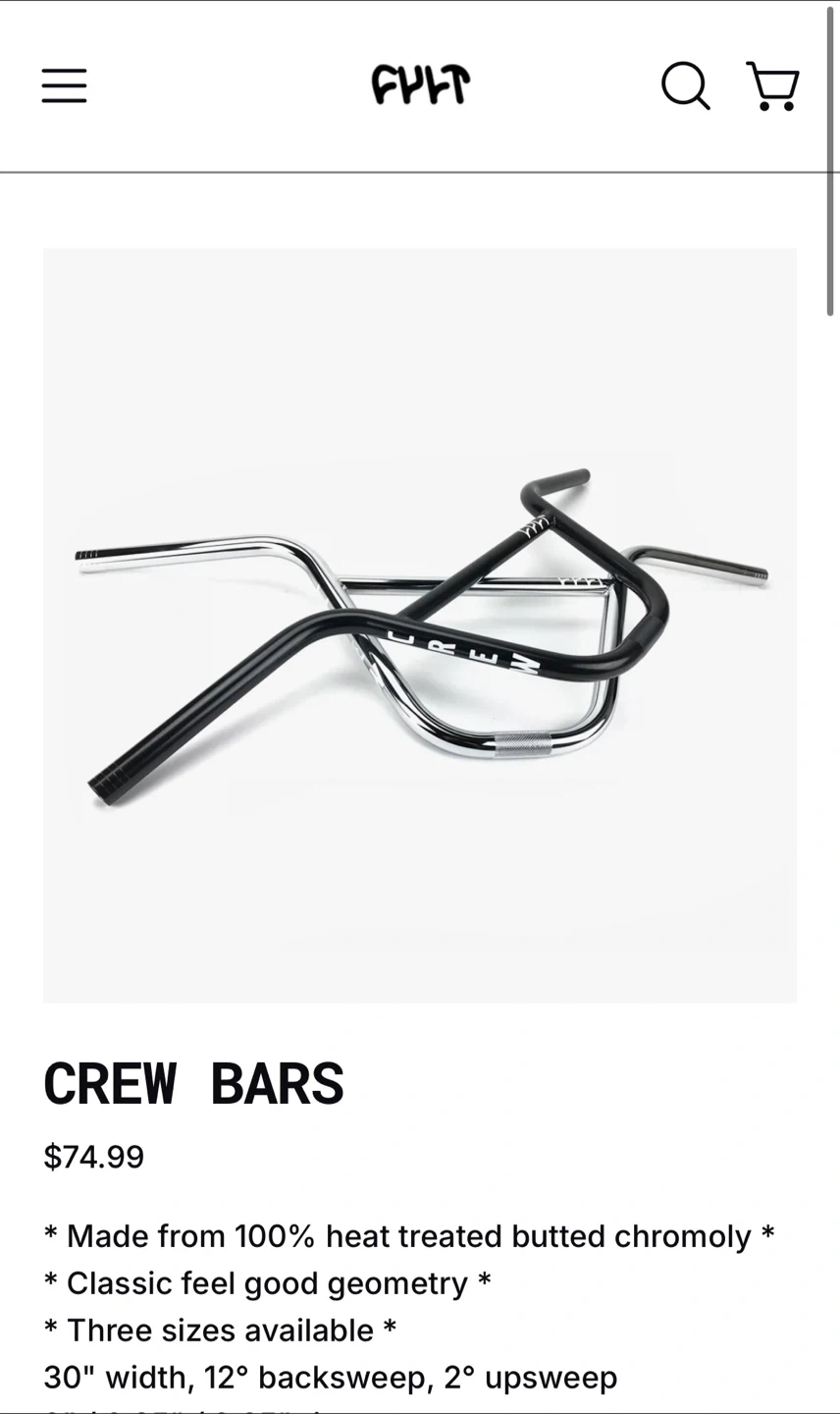 Jet Block Bmx With Cult Bars (Pegs Included)