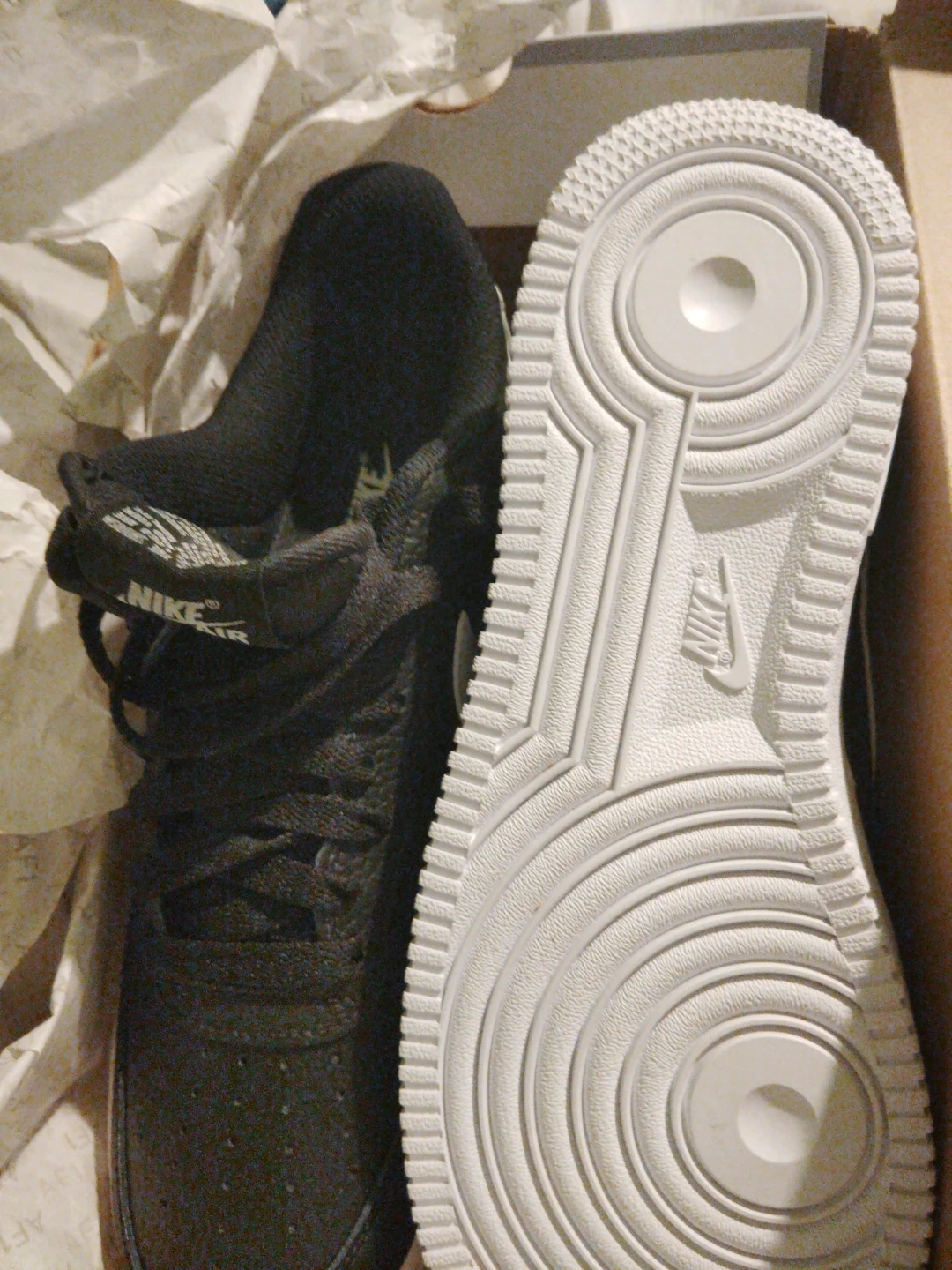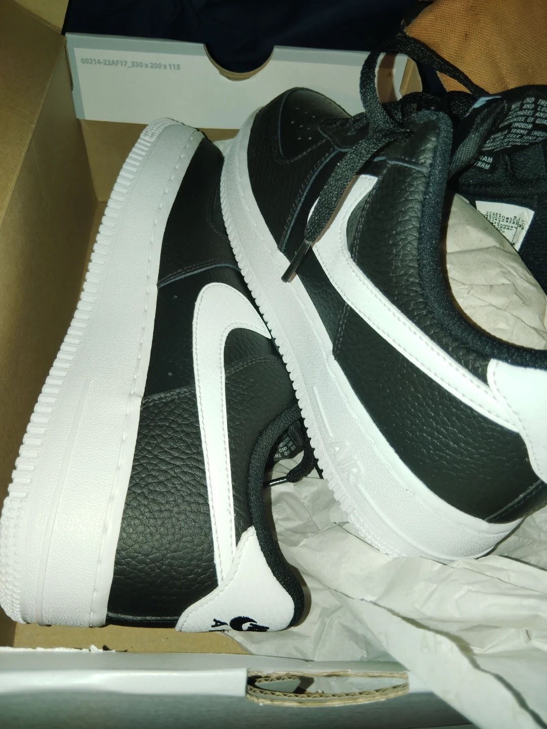 Selling a pair of Nike Air Force 1s in black and white, size 10. They come with the original box. These classic sneakers are in great condition and ready for a new owner!