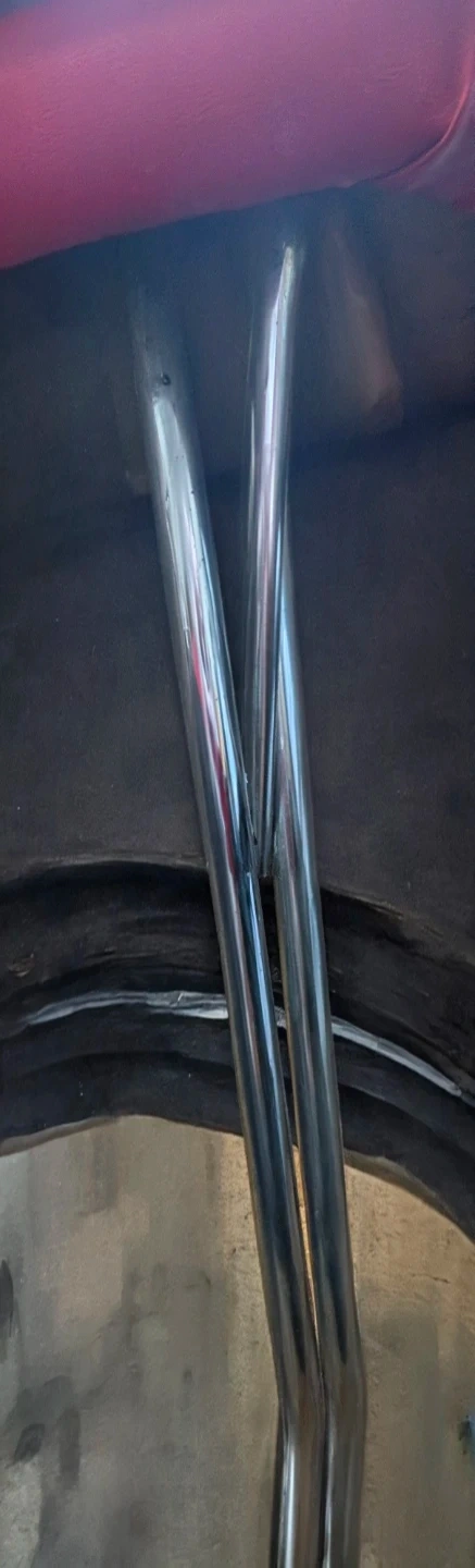 Selling a vintage dining table with a unique retro design. It features a patterned top and chrome legs. The table has a red trim. It's in good condition for its age and would make a great addition to any retro-themed dining room
