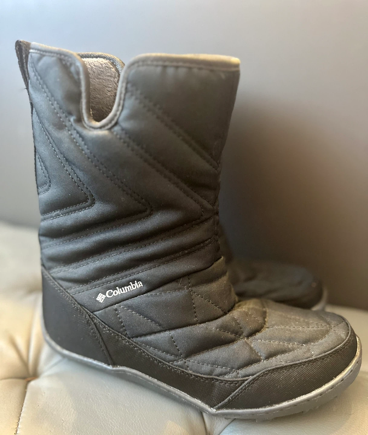 Selling a pair of Columbia winter boots in black. They're in great condition and ready to keep your feet warm this winter! Selling because they are too narrow, worn twice.