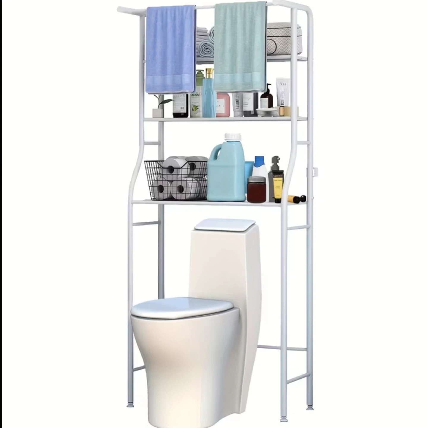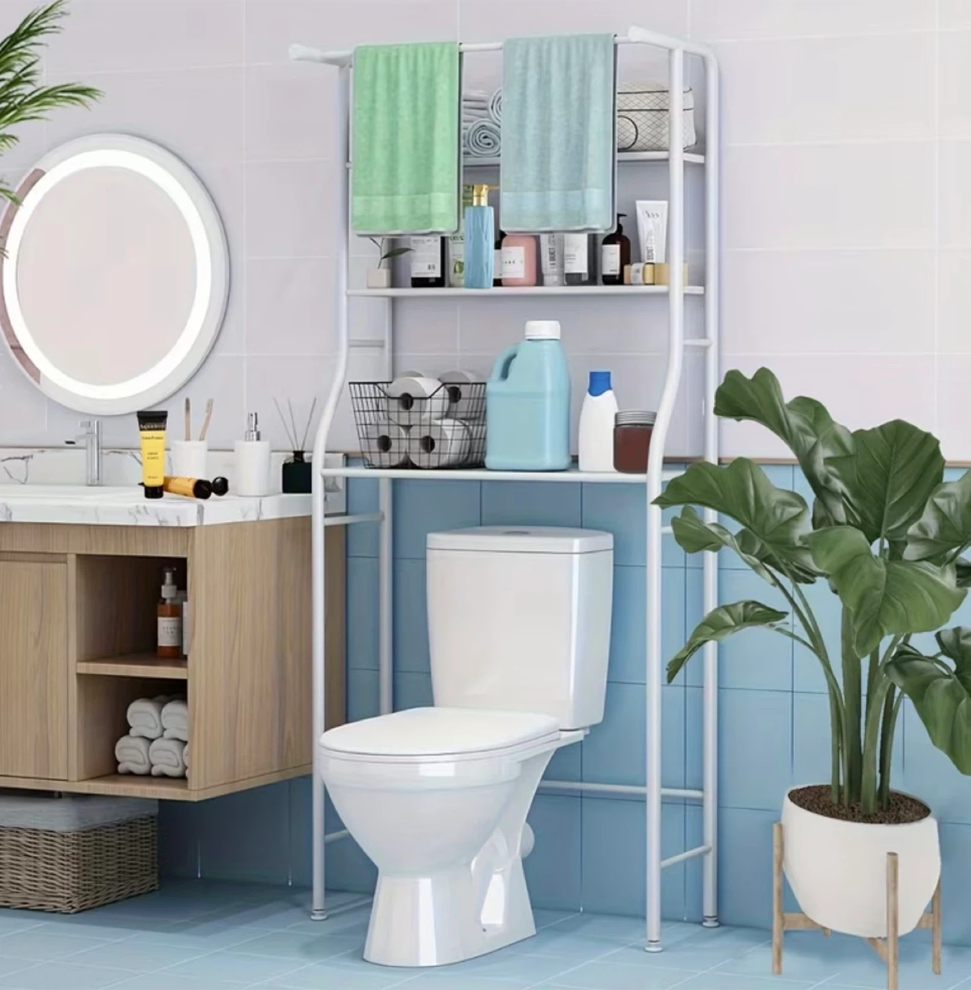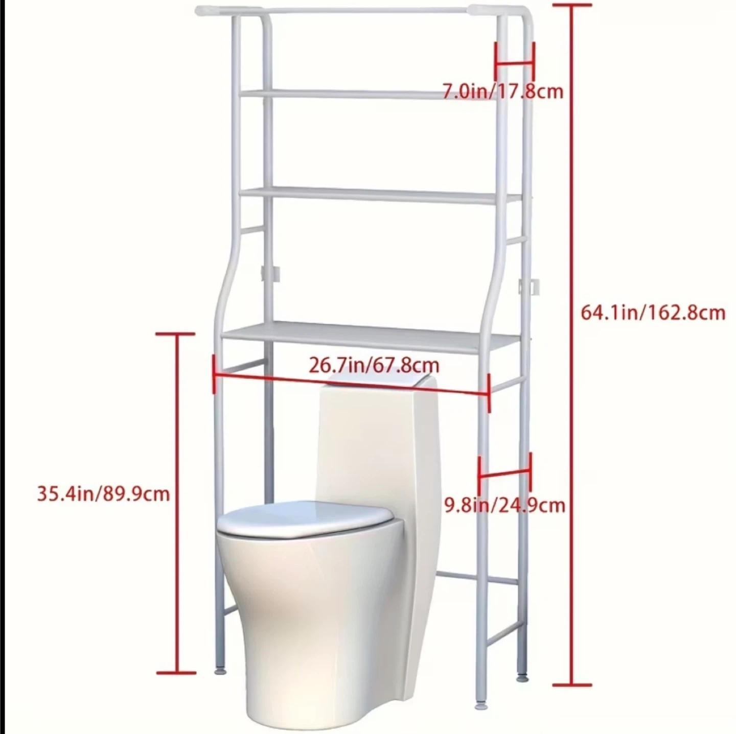 Declutter your bathroom with this over-the-toilet shelf! It’s a great way to add extra storage without taking up too much space. The shelf is made of alloy steel and iron, It's perfect for any bathroom!