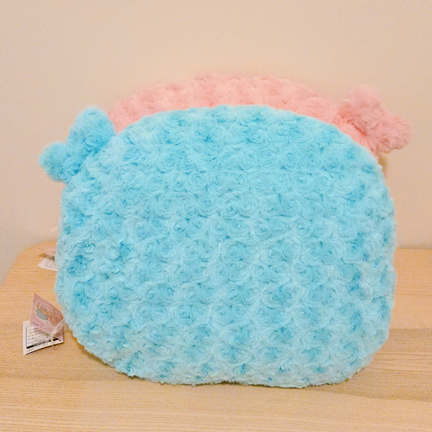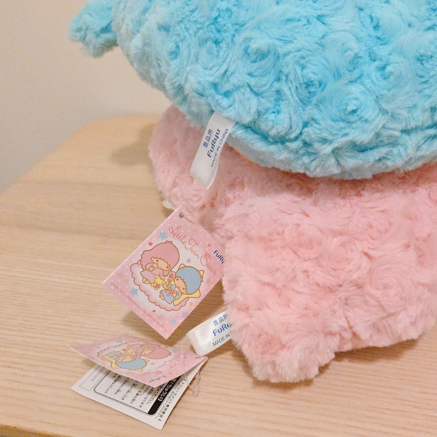 「Little Twin Stars」face cushions from Sanrio! These soft and faux rose fur pillows are perfect for adding a touch of kawaii to your bed or space. They come as a set of two, please help Kiki & Lala find a home ♡