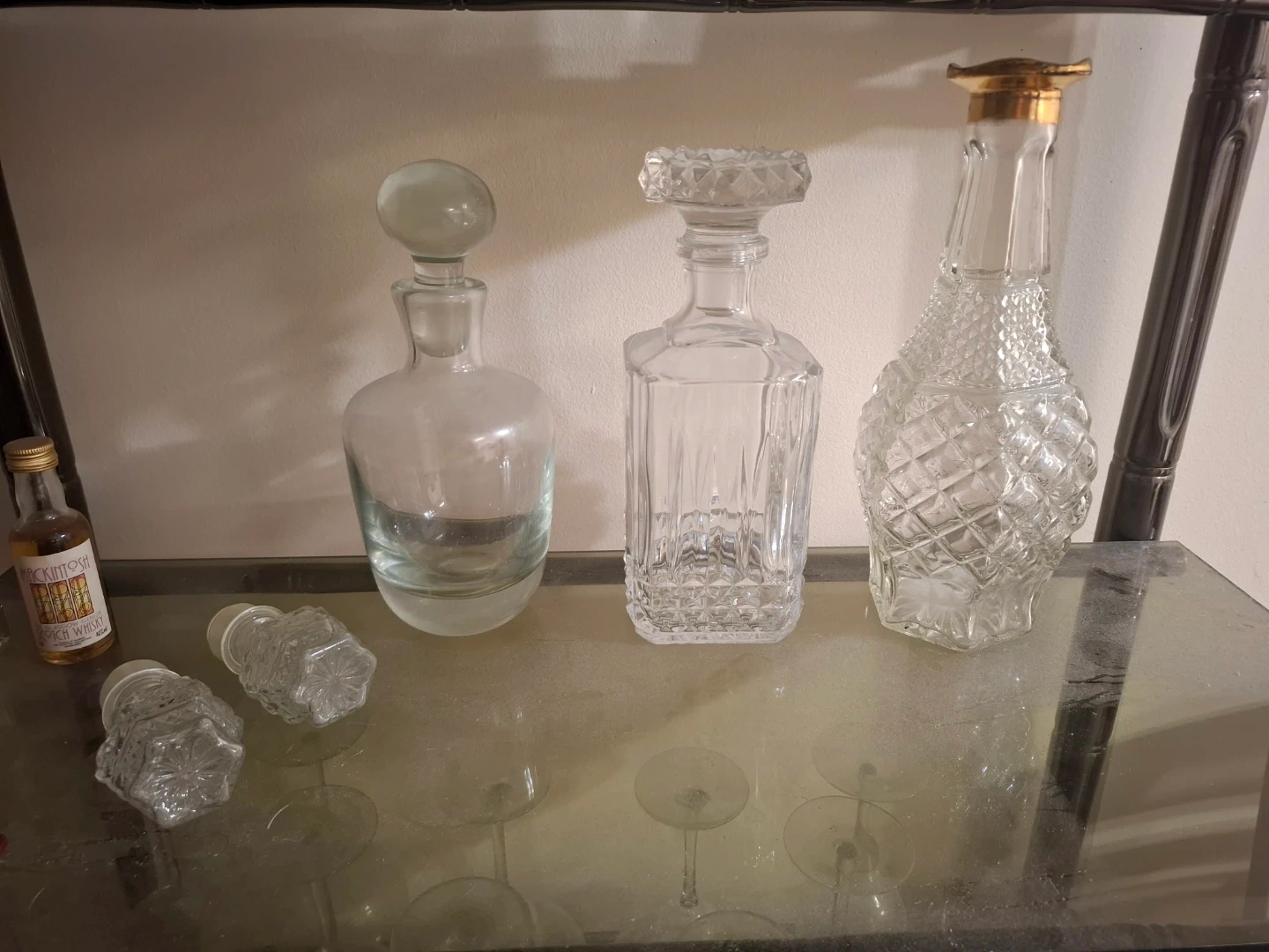 Selling a beautiful set of vintage glass decanters! They would look lovely in a bar or as a decorative piece in your home. There are three different styles of decanters,