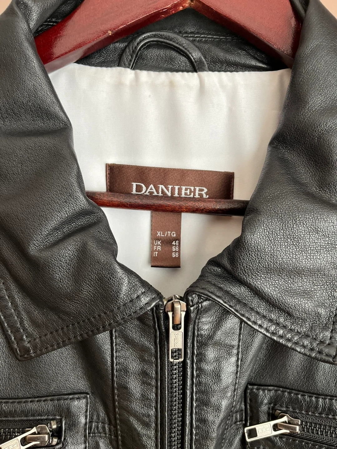 Selling a stylish Danier black leather jacket in size XL/TG. It's in great condition and ready for a new owner. Perfect for adding a touch of cool to any outfit!