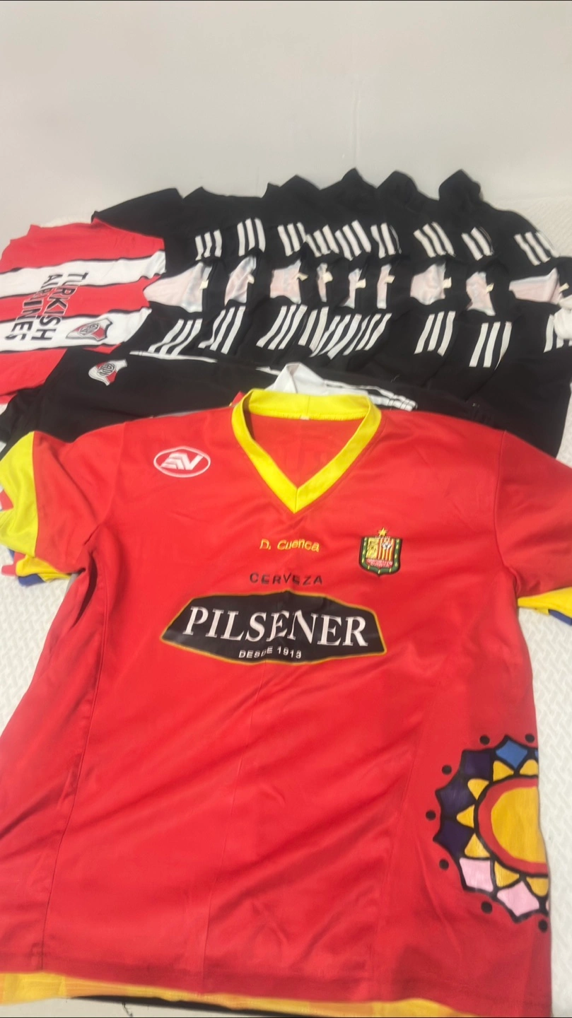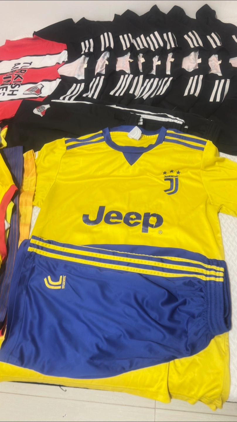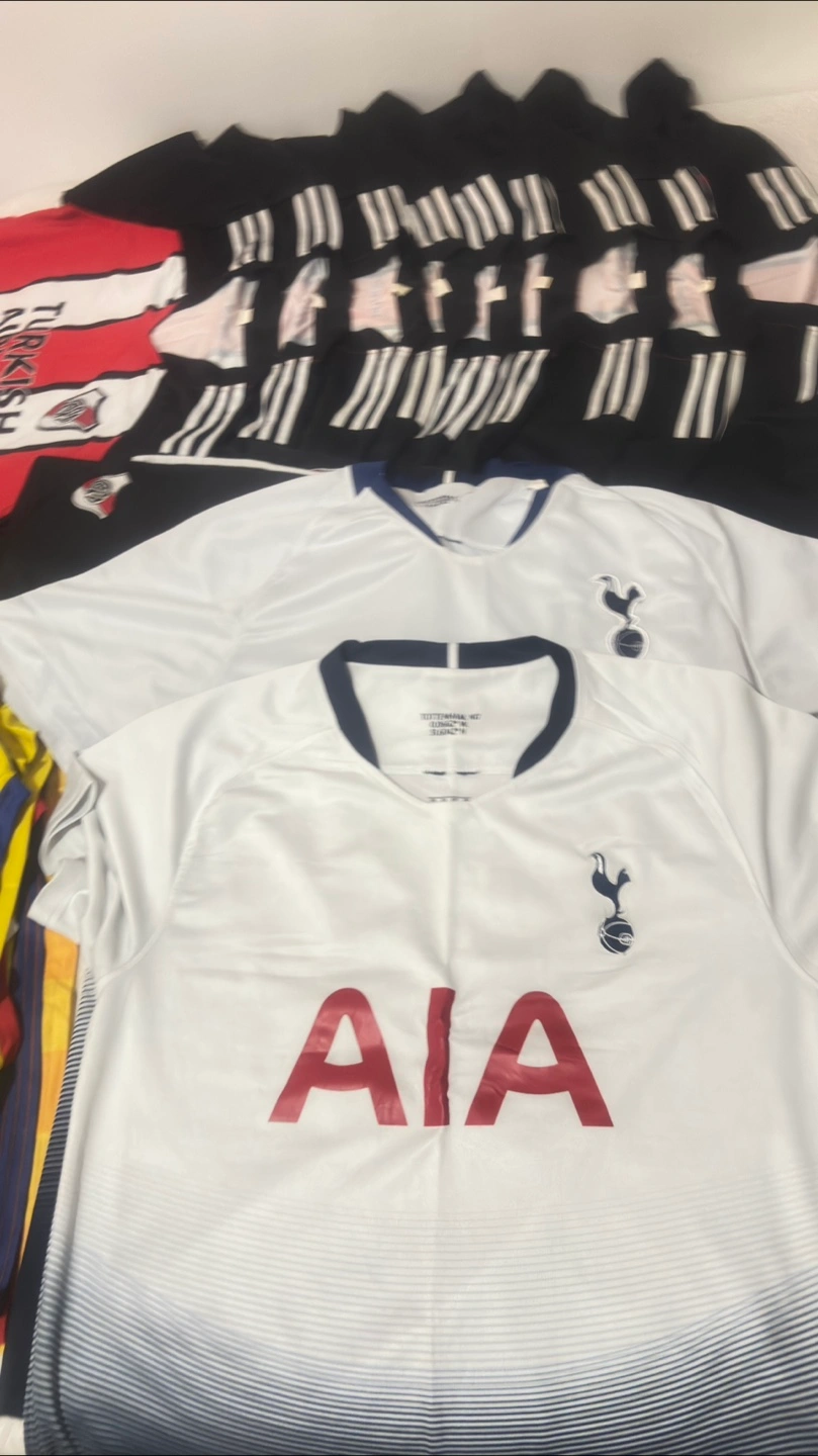 Selling a collection of soccer jerseys! Includes Adidas, Juventus (yellow/blue), Tottenham (white/blue), River Plate (red/white), and Manchester City (orange/blue). Great for any soccer fan!
