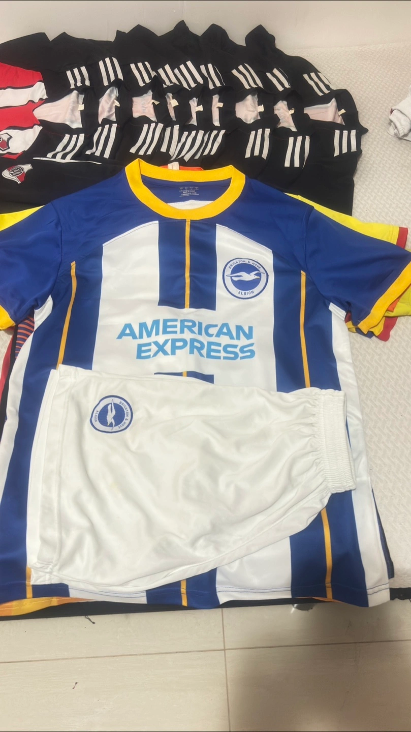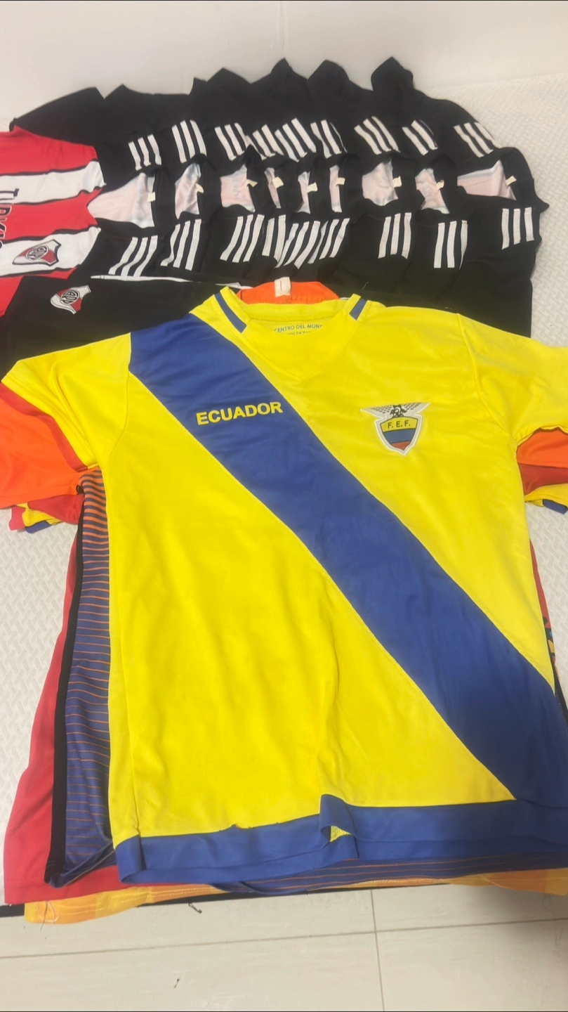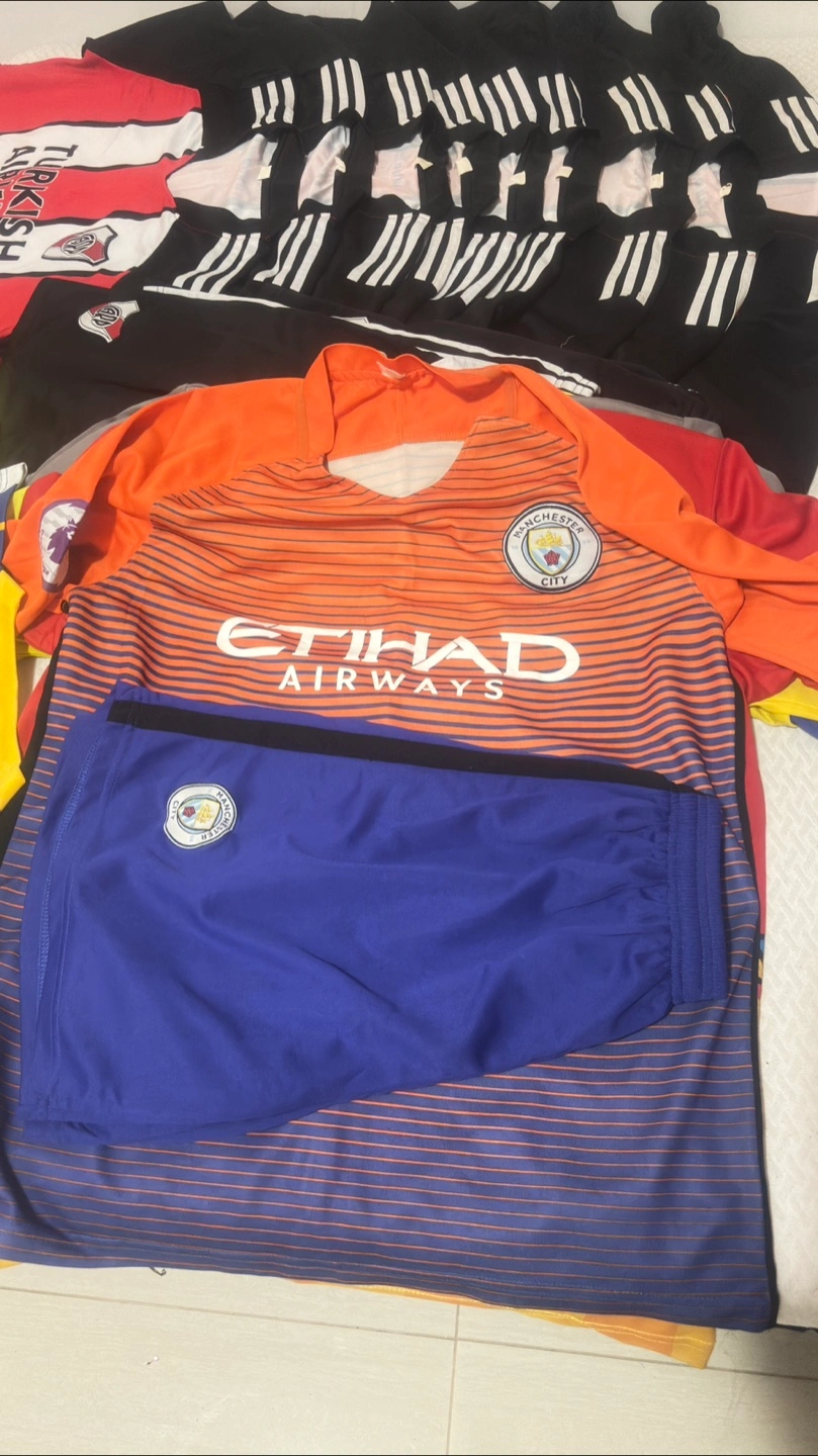 Selling a collection of soccer jerseys! Includes Adidas, Juventus (yellow/blue), Tottenham (white/blue), River Plate (red/white), and Manchester City (orange/blue). Great for any soccer fan!