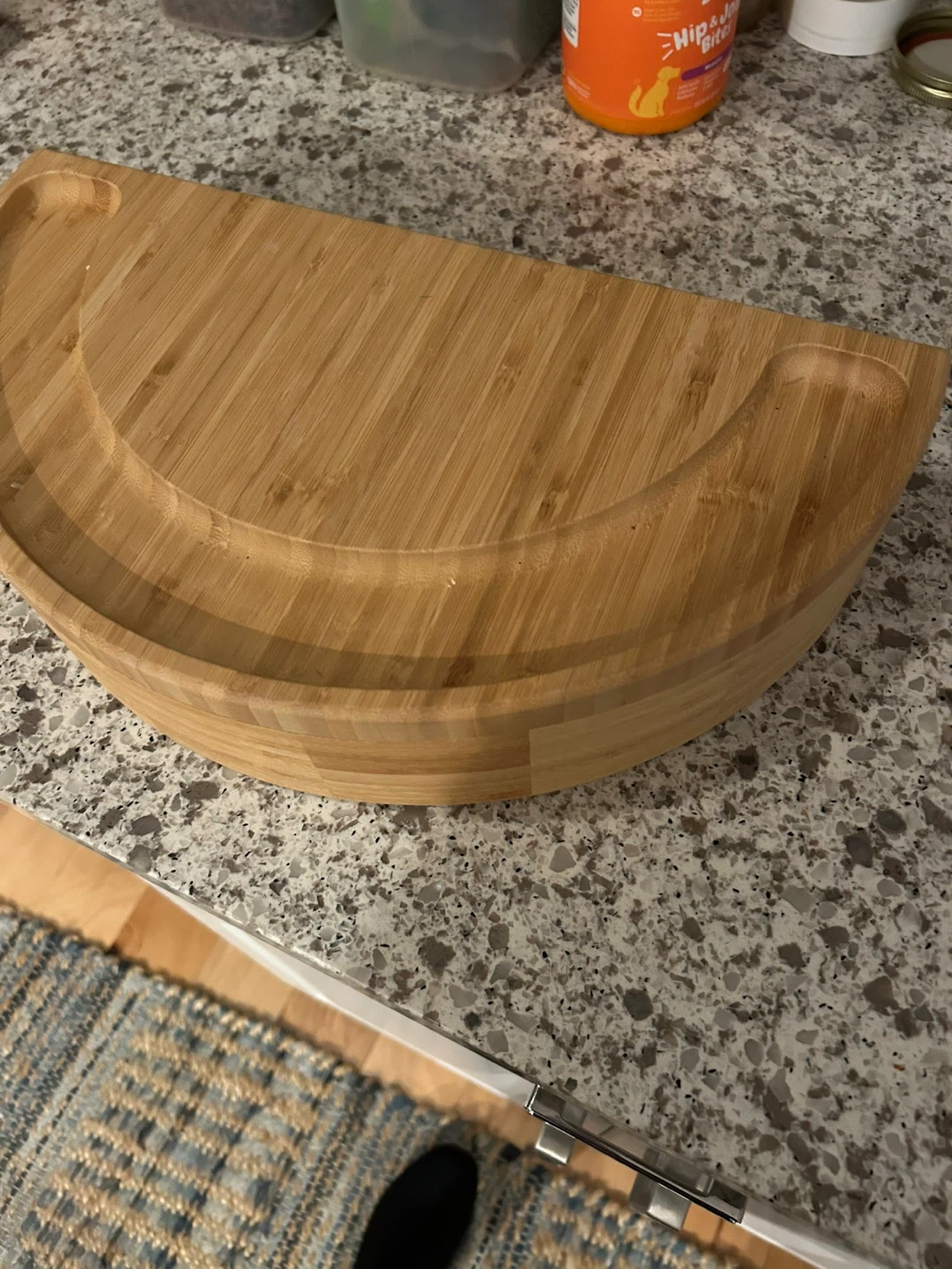 Here's a cute bamboo cheese board! It comes with little bowls and a set of cheese knives that tuck away in a drawer underneath. Perfect for your next get-together!