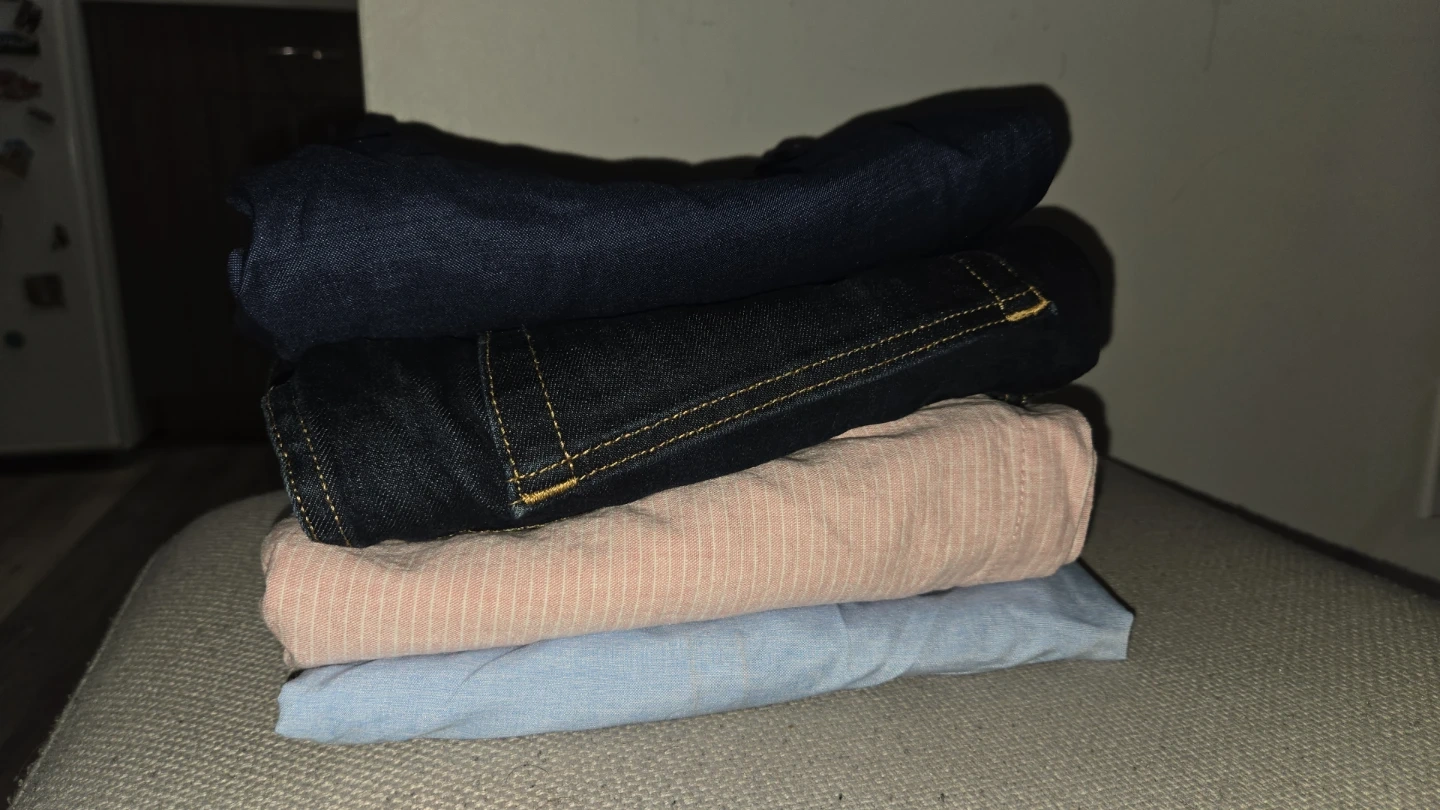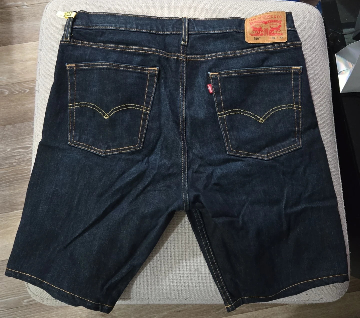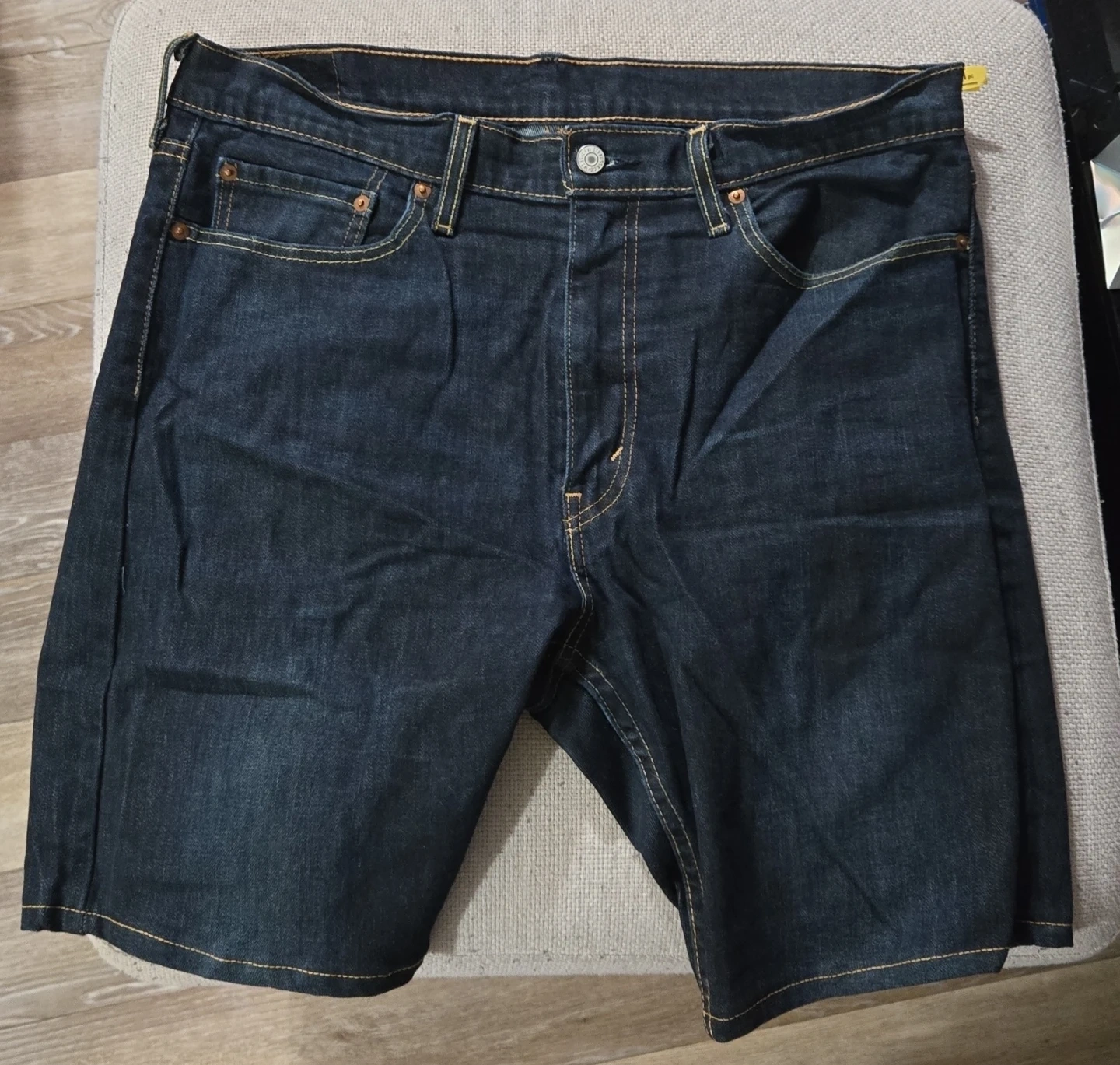 • Levi's dark wash denim shorts (hemmed to be shorts)