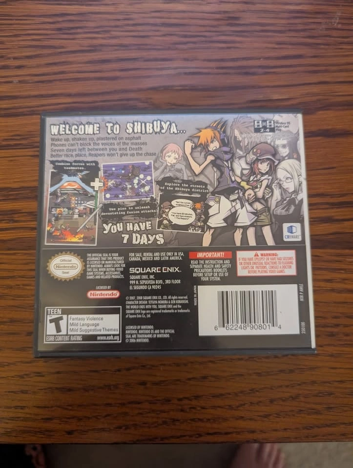 Selling an in the box copy of The World Ends With You for NDS. This comes with the box, booklet, and cartridge as pictured. Pick up in Naperville. It is often abbreviated as TWEWY and is made by SquareEnix.