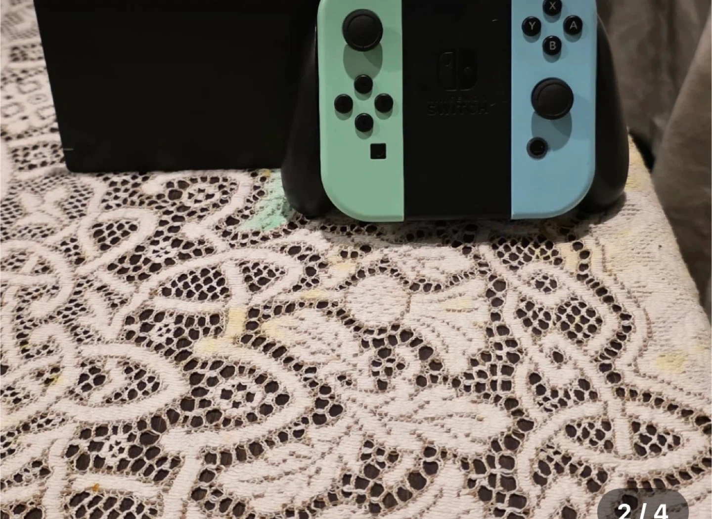 Selling a Nintendo Switch console! It comes with a set of joy-cons and a variety of games including Mario Kart 8 Deluxe, Super Mario Odyssey, Mario + Rabbids Kingdom Battle, Lego City Undercover, and Zelda Breath of the Wild. Perfect for some fun gaming!
