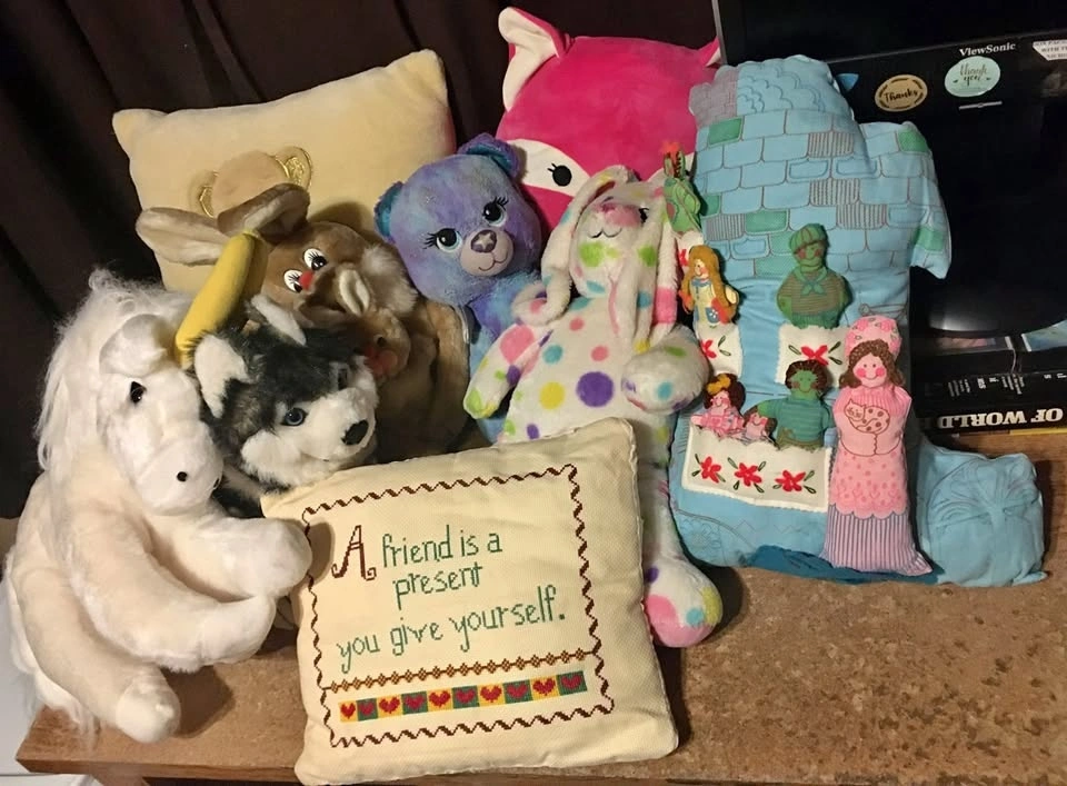 LOT OF LARGE PLUSH ANIMALS & PILLOWS BAB DOG UNICORN