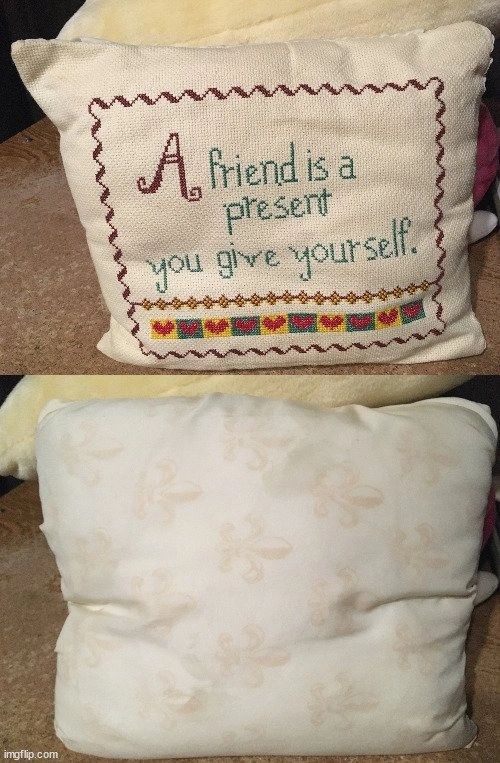 A FRIEND IS A PRESENT YOU GIVE YOURSELF THROW PILLOW 12" X 10"