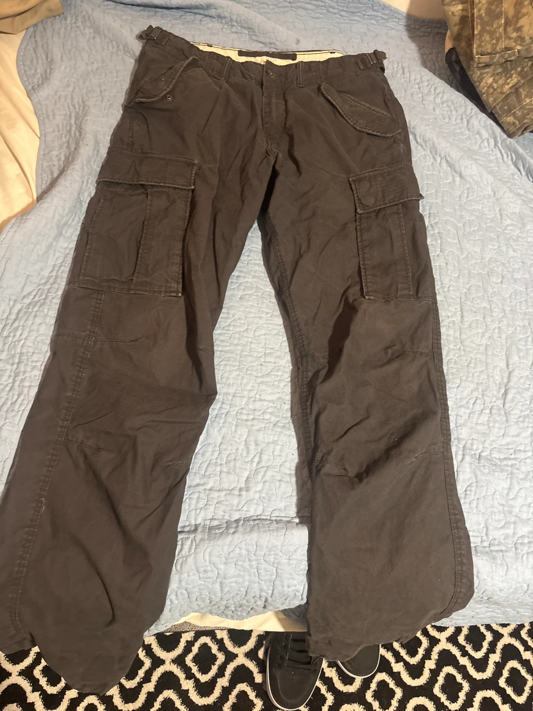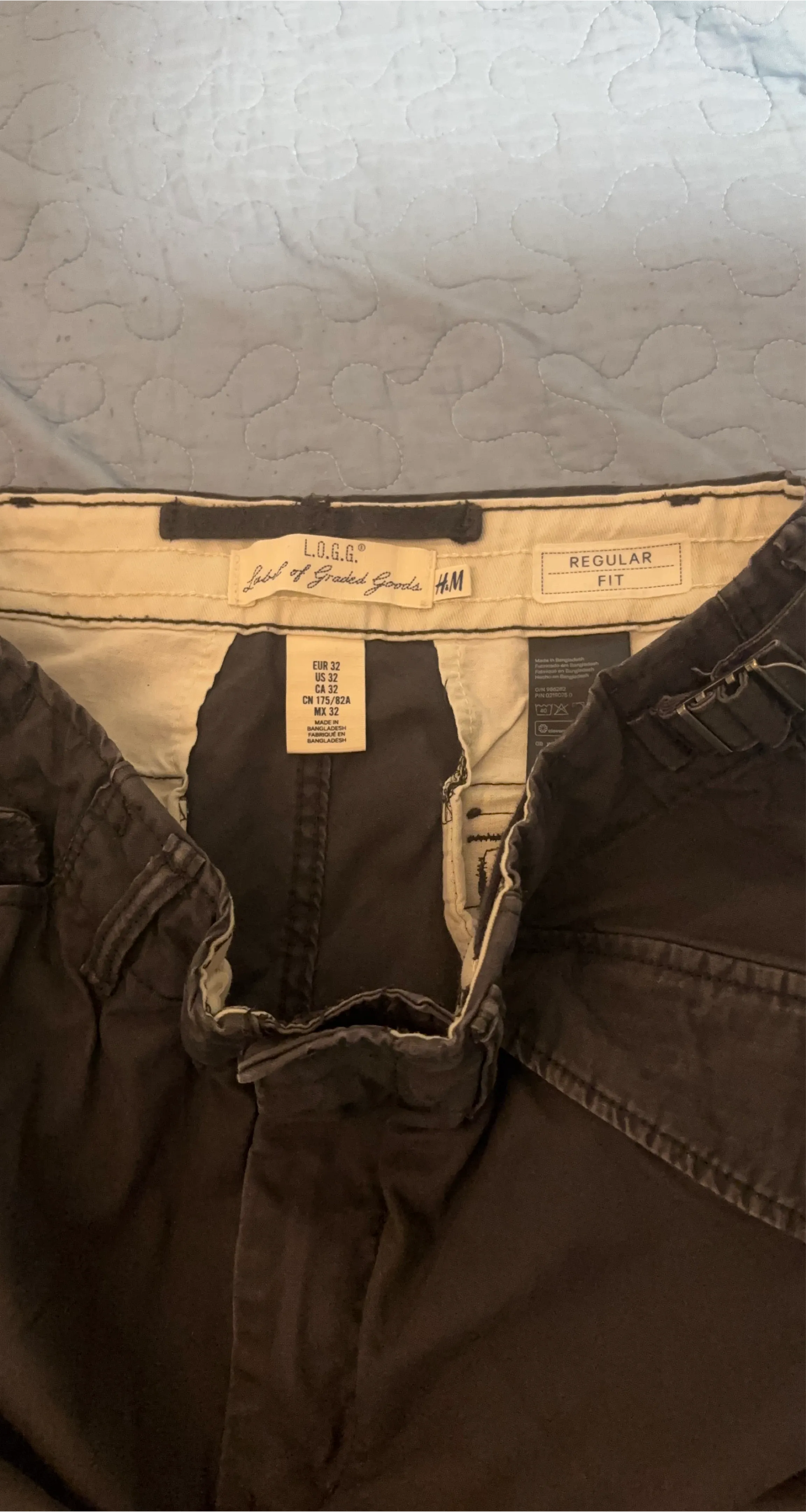 Selling a pair of H&M L.O.G.G. cargo pants in size 32. They appear to be a regular fit and are in good condition. Great for everyday wear!