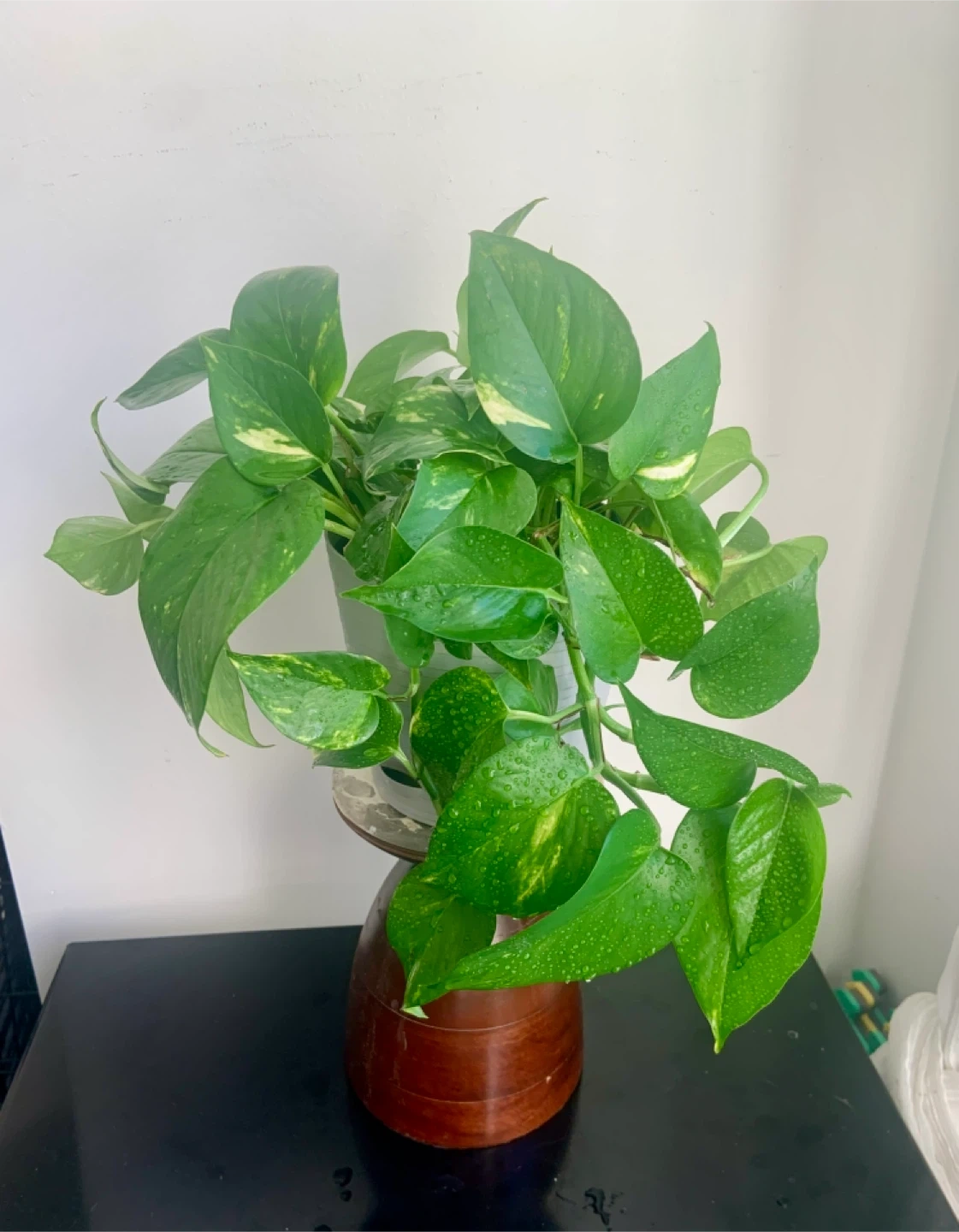 I'm selling a healthy pothos plant! It's got beautiful green leaves with lovely variegation. It's currently in a pot, ready to brighten up your space