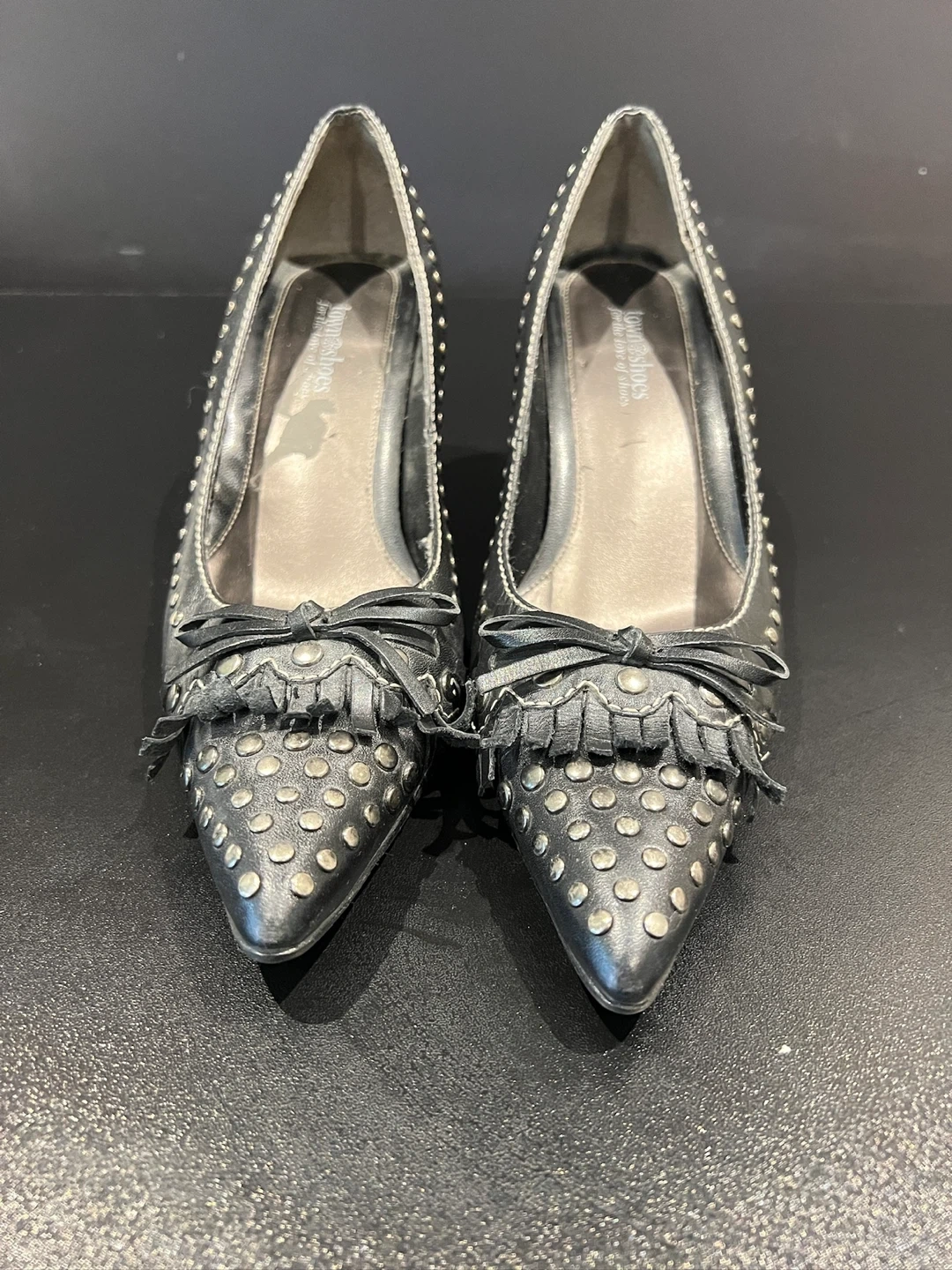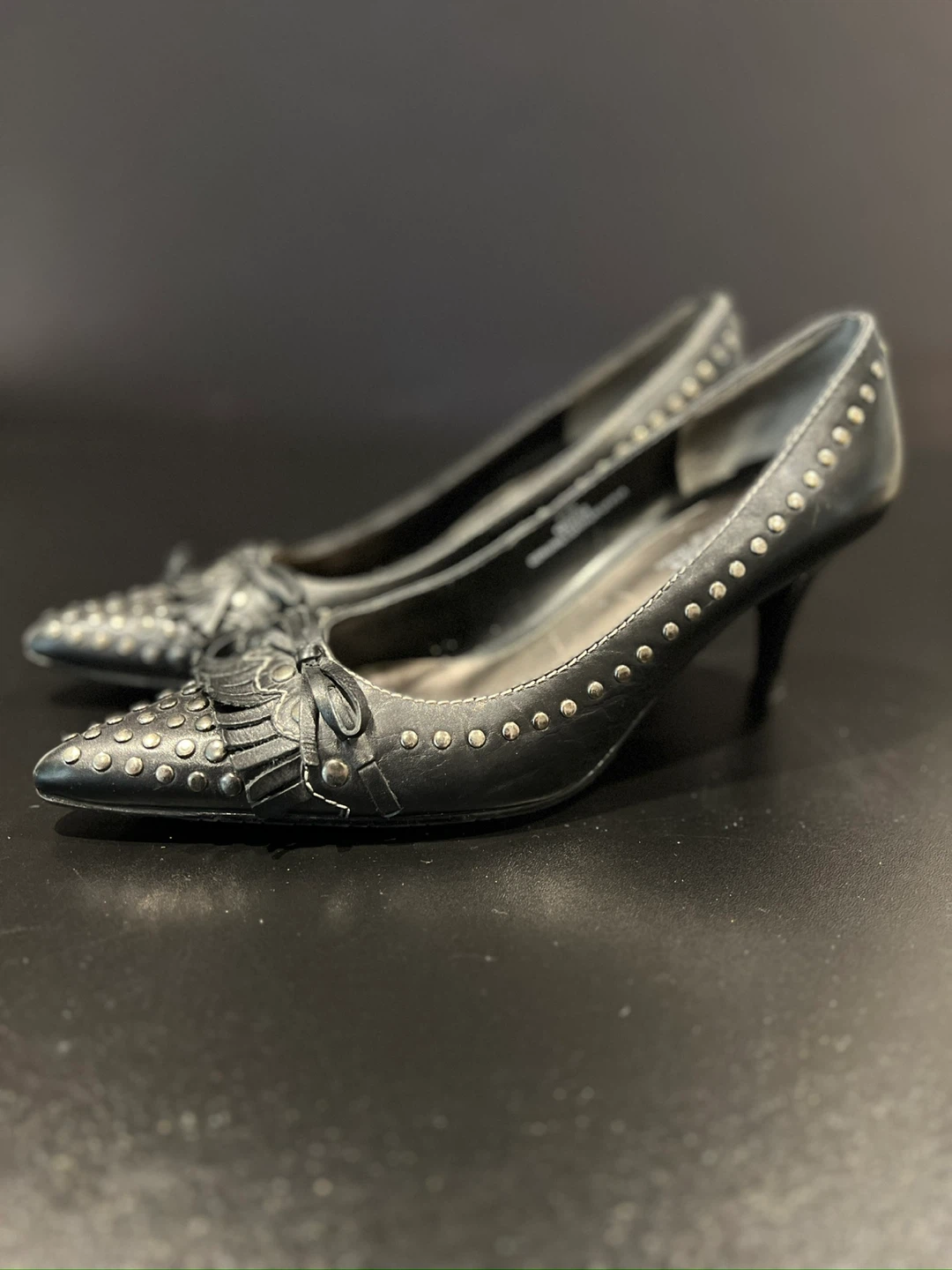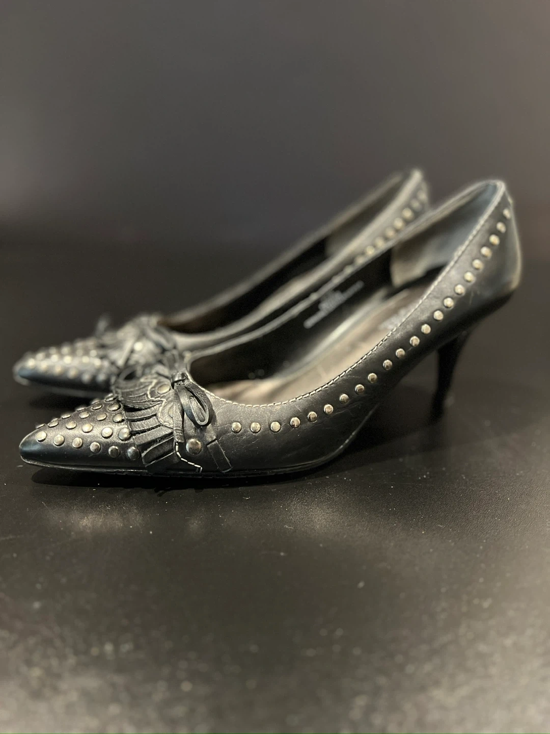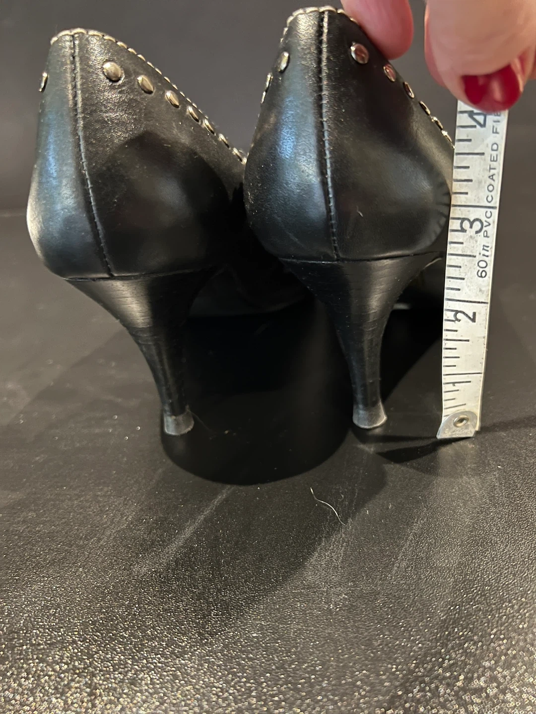 Towne Shoes Leather Black Studded Heels - Size 7.5