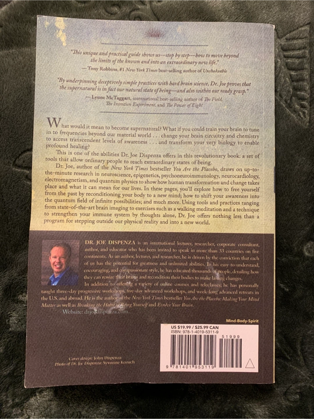 Selling the book Becoming Supernatural by Dr. Joe Dispenza. It's a Wall Street Journal bestseller that explores how common people are doing the uncommon. A great read if you're interested in the power of the mind and body connection!