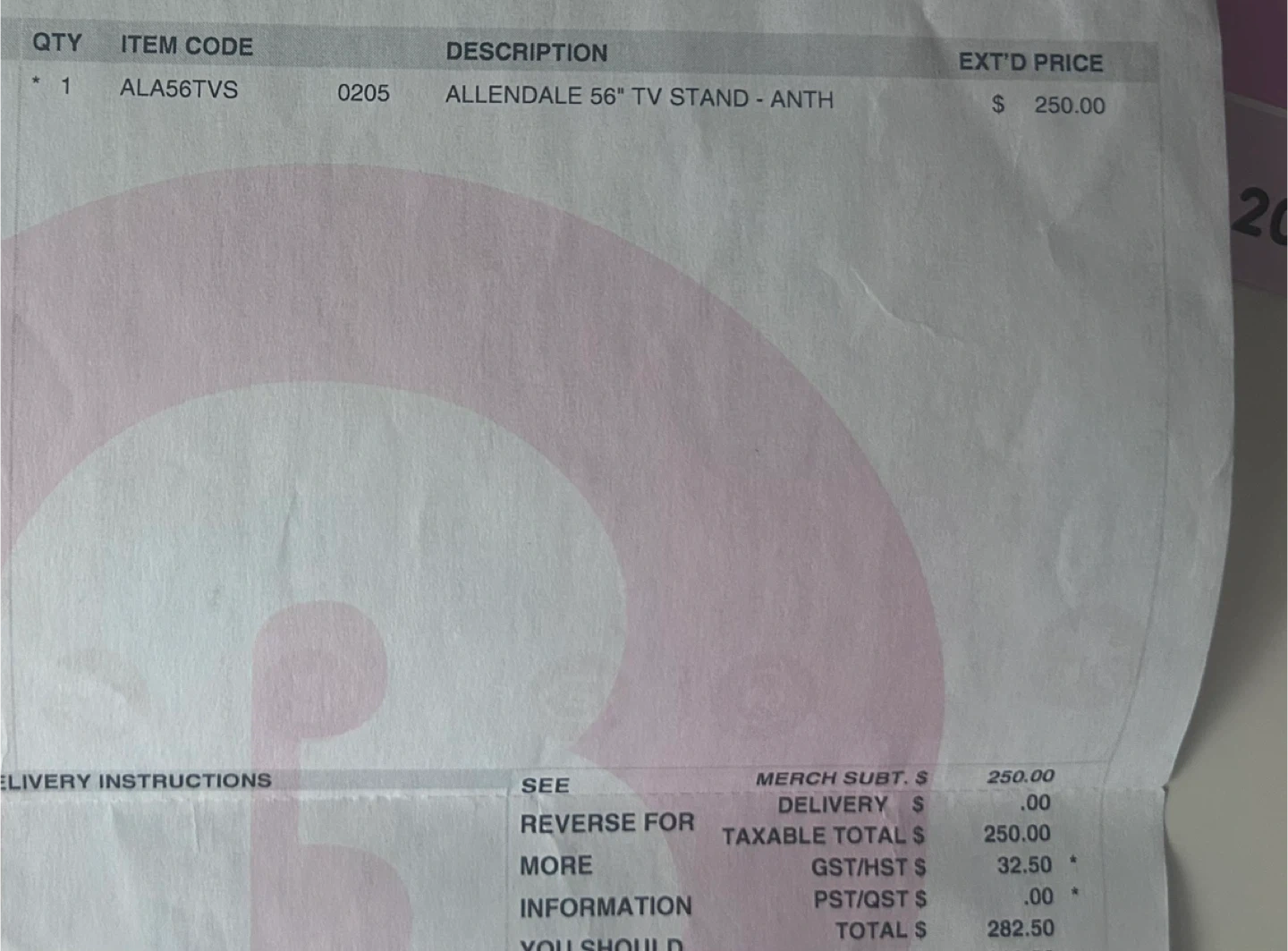 The Brick “Allendale” 56" TV stand in anthracite colour. It has two large drawers for storage.
