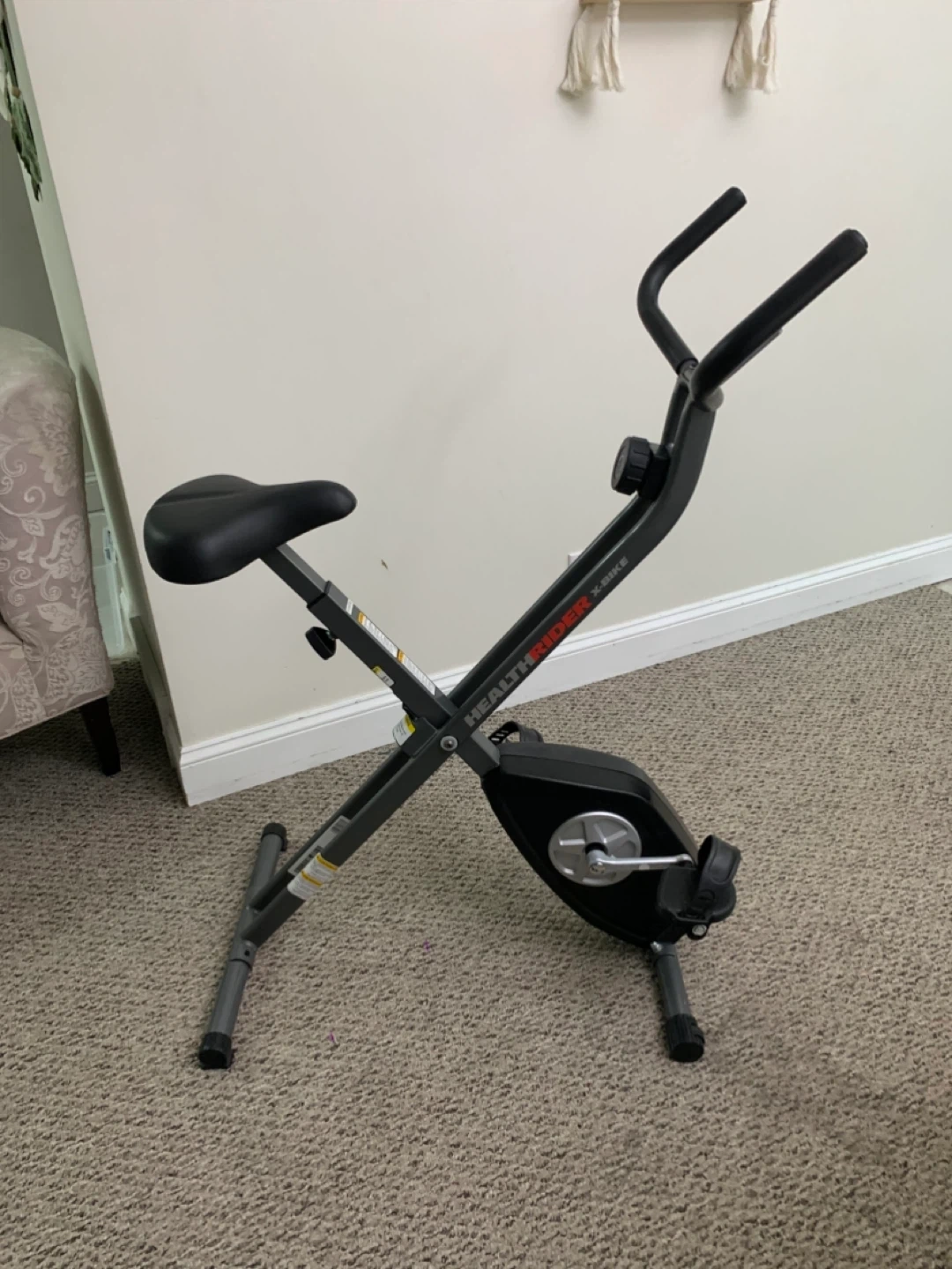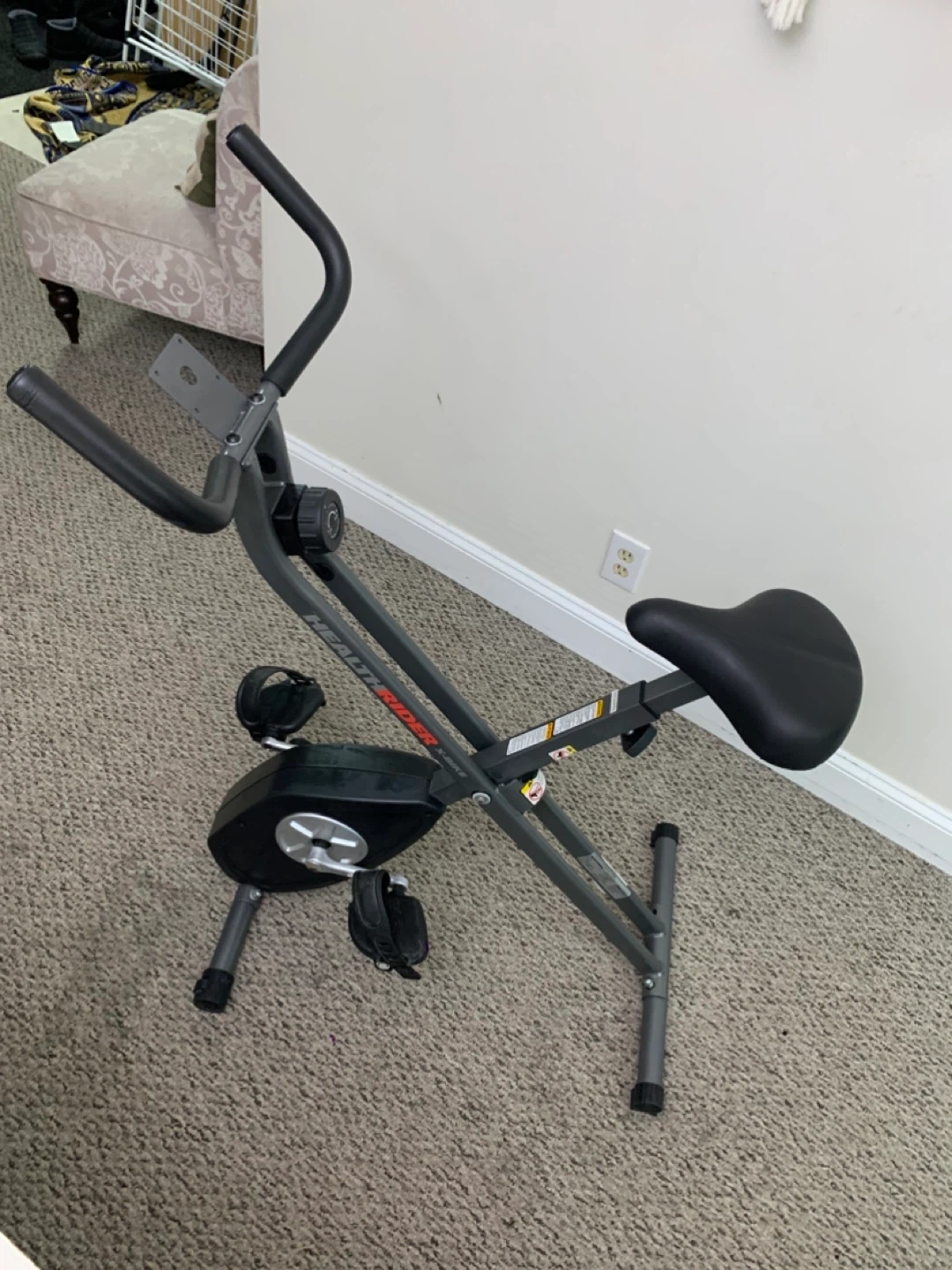 Selling a HealthRider X-Bike exercise bike. It's in used condition, as you can see in the photos, but still works great for getting a workout in at home! Perfect for small spaces and easy to store when not in use