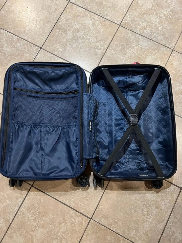 Total exterior dimensions including wheels and handles, carry-on piece: 21"W x 14"H x 9"D
