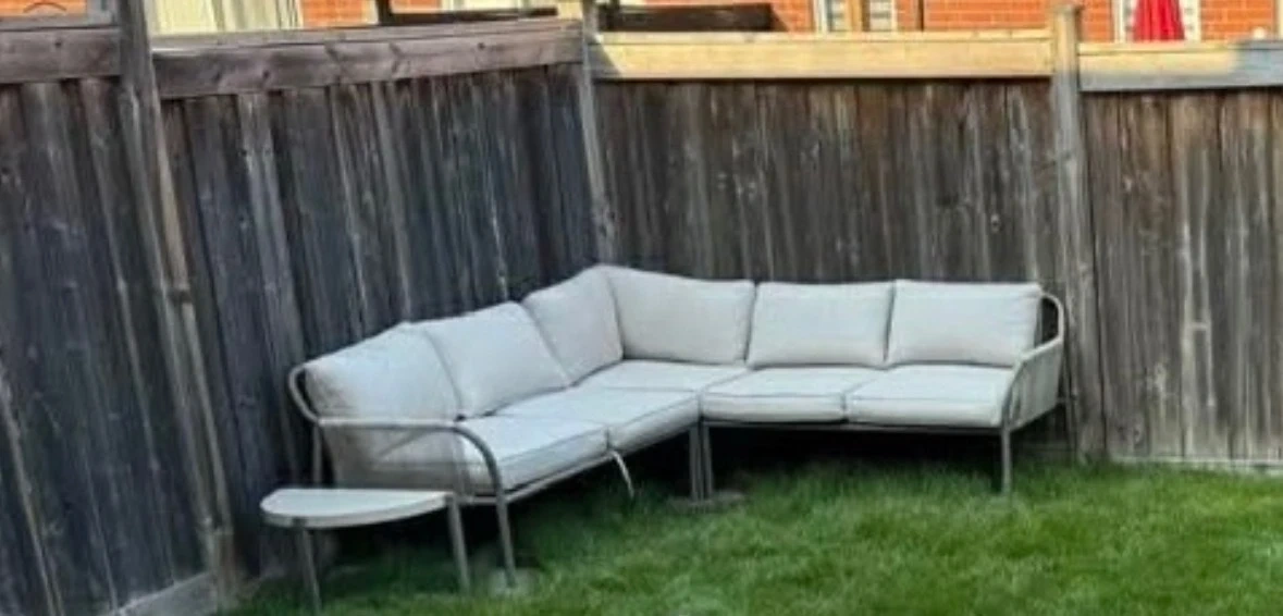 Selling a 5-seater outdoor corner lounge set. It's perfect for relaxing in your backyard or on your patio. The set includes a corner sofa and a coffee table. Including storage bin for pillows from Ikea.