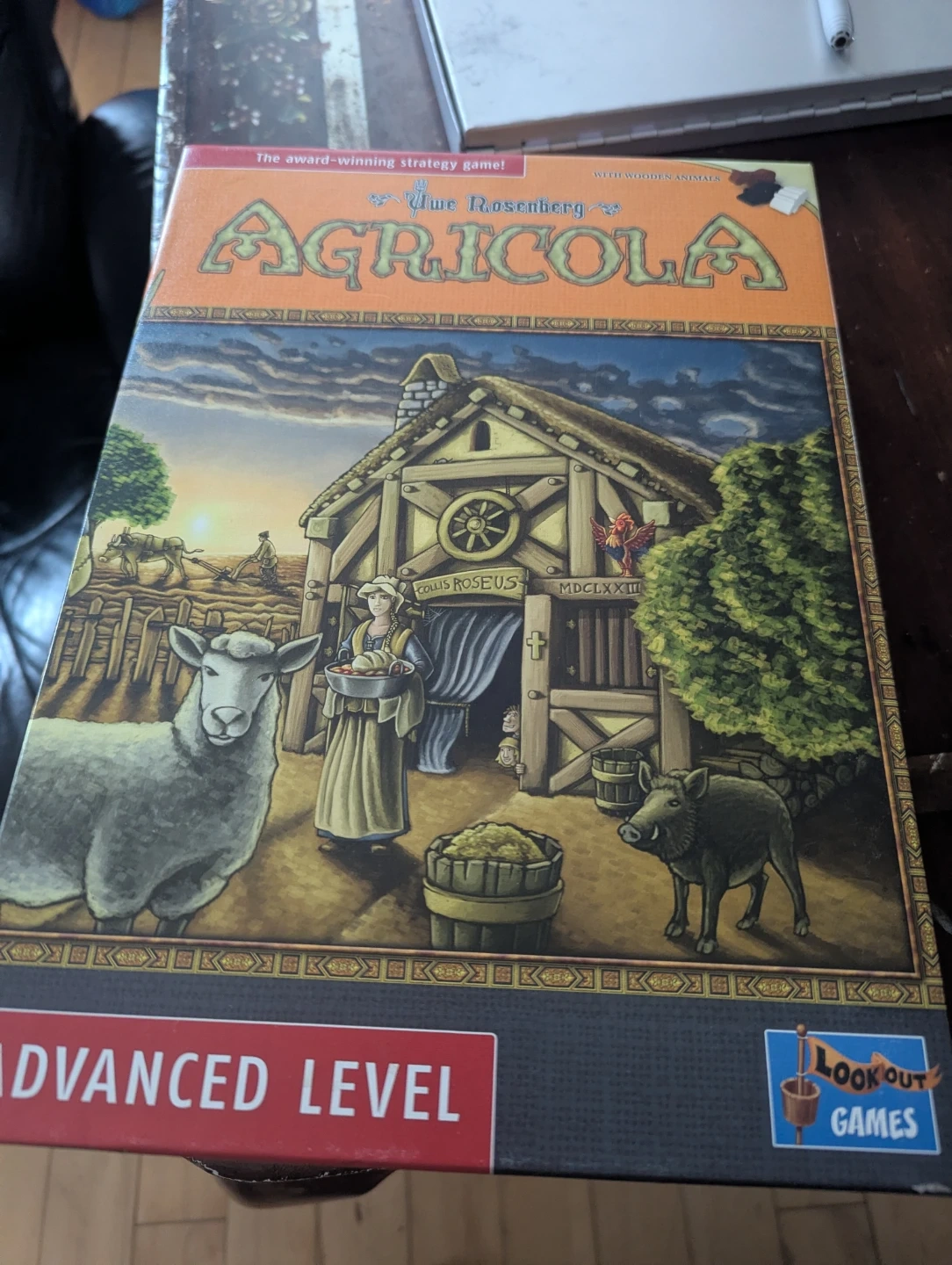 Selling the Agricola board game! It's a super fun, award-winning strategy game. All the pieces are neatly organized with a 3D printed box insert. Perfect for game nights with friends and family!