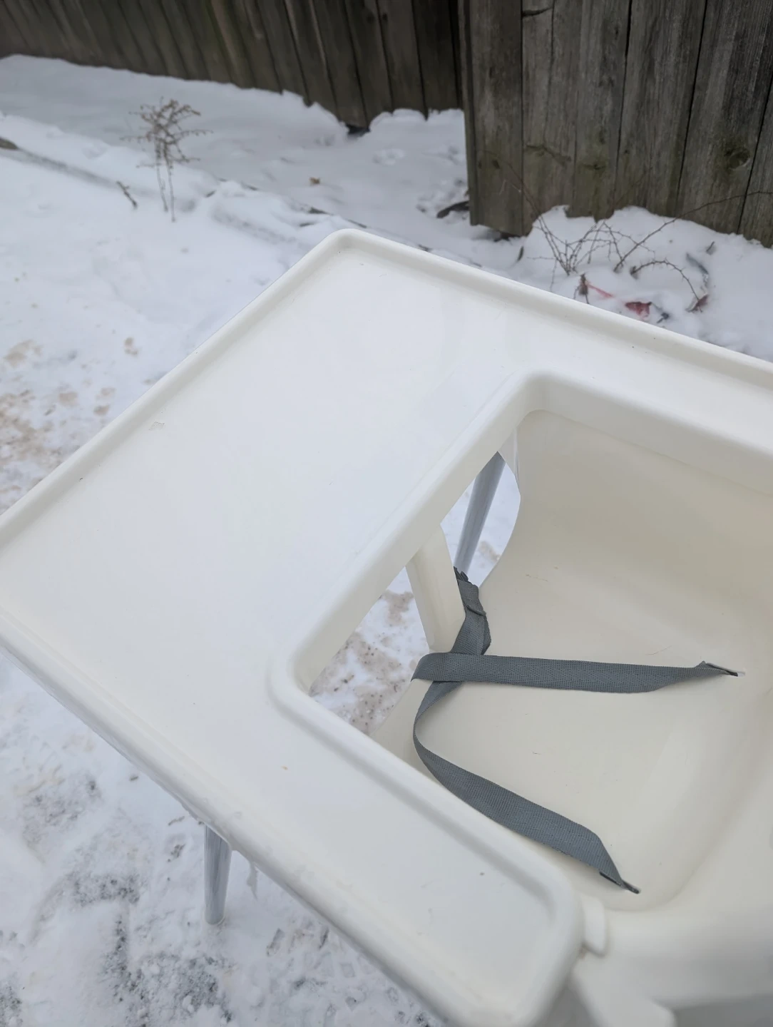 Selling a gently used IKEA Antilop high chair in white! It's lightweight and easy to clean, perfect for meal times with your little one. The chair comes with a safety belt.