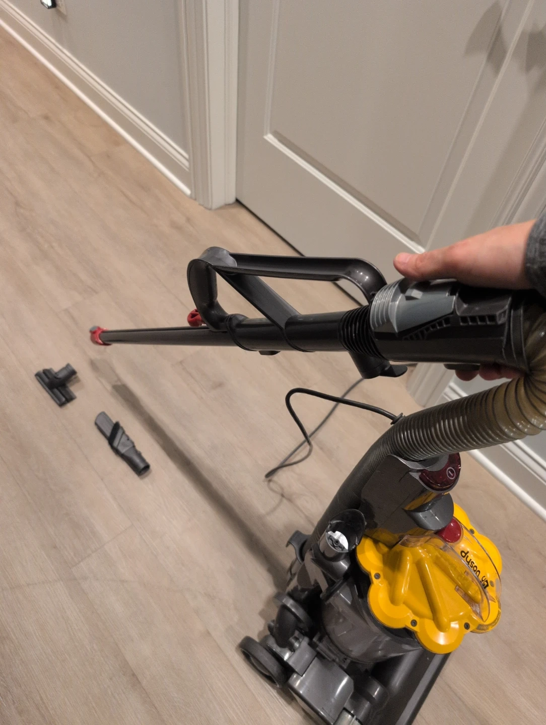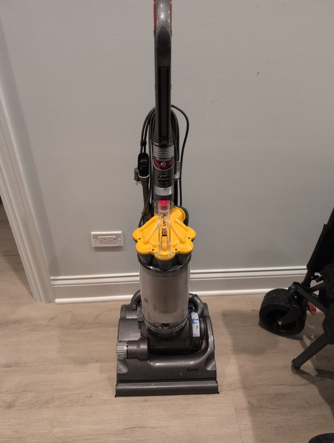 Selling a Dyson DC33 vacuum cleaner. It's in good working condition and ready to tackle any mess! Includes attachments.