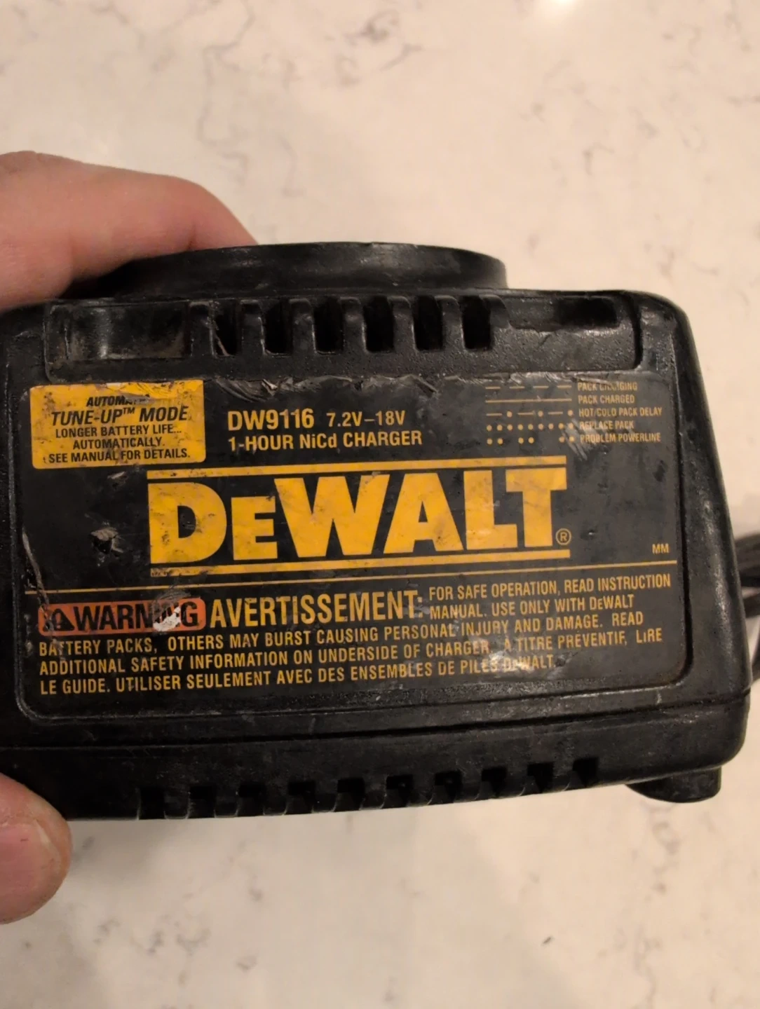 Selling a DeWalt DW9116 7.2V-18V 1-Hour NiCd Charger. It is compatible with 7.2V to 18V batteries.