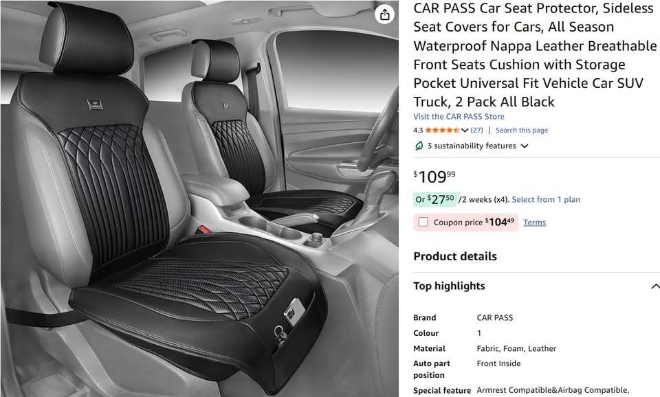 Sideless Universal Car Seat Covers – Black (2 Pack)