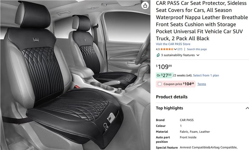 BNIB Sideless Universal Car Seat Covers