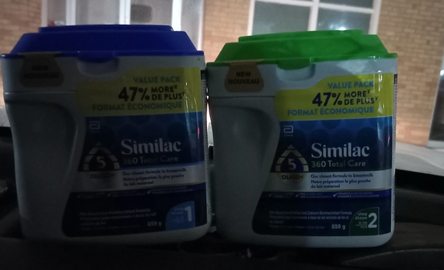 Selling brand new containers of Similac 360 Total Care infant formula. One is step 1 and the other is step 2. Both are value packs with 47% more! Each container has 859g of formula.