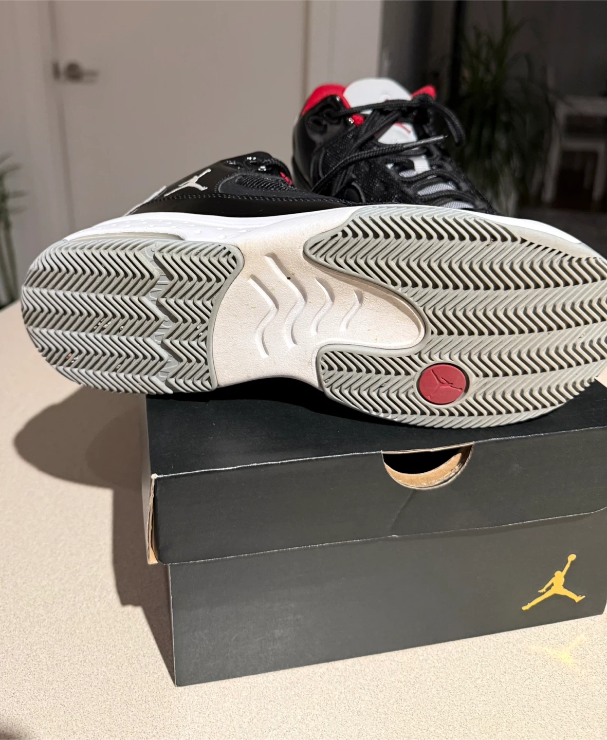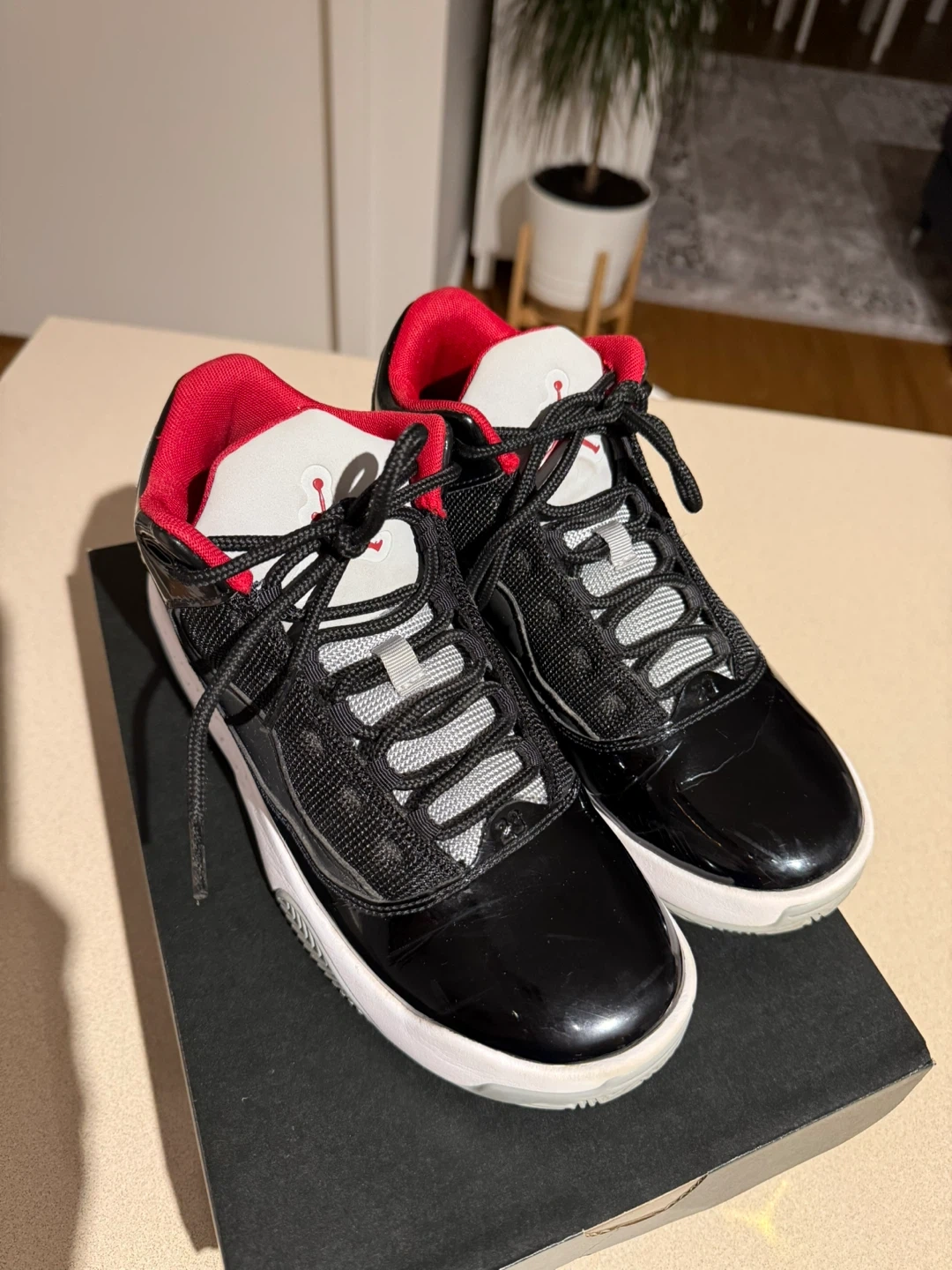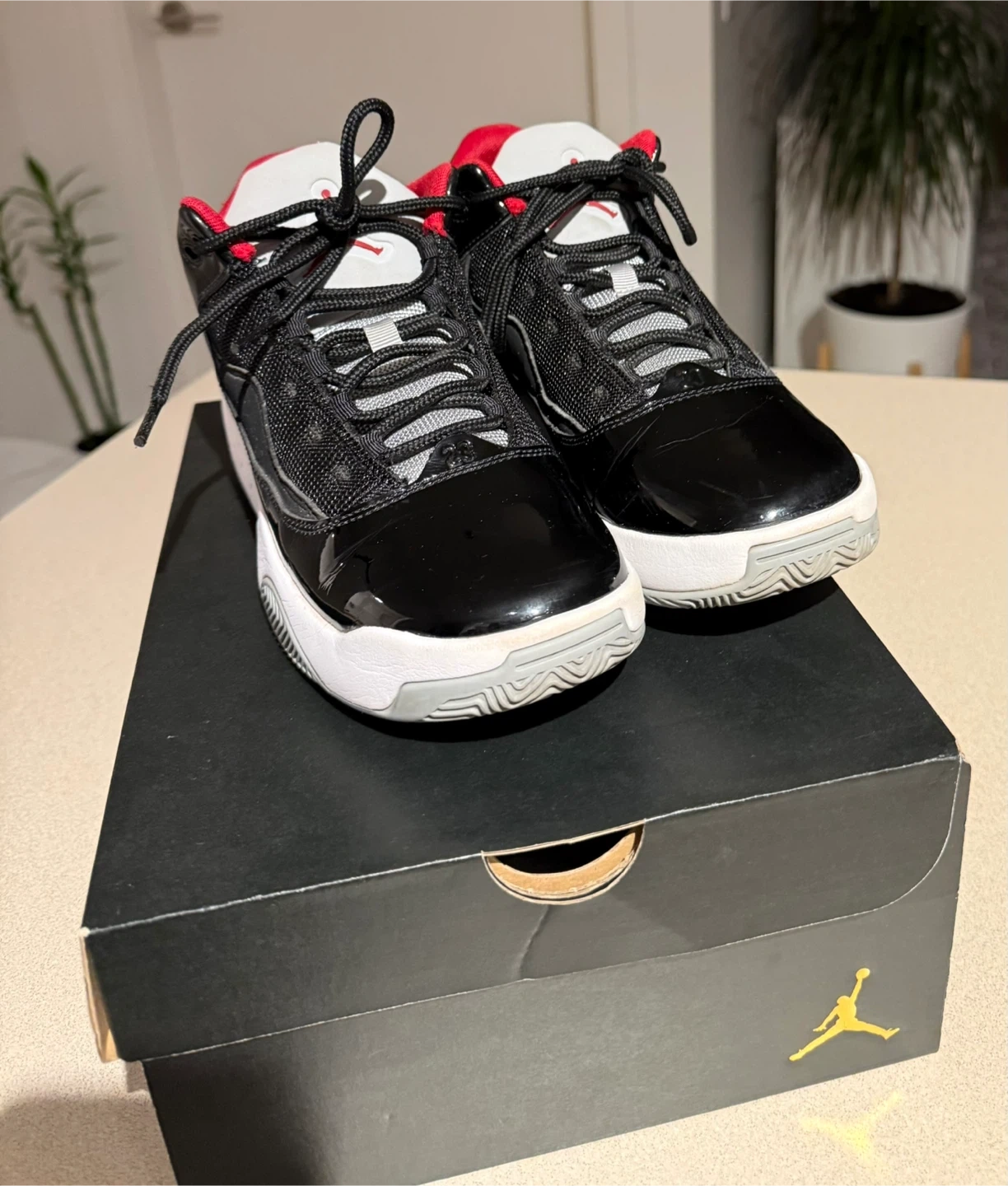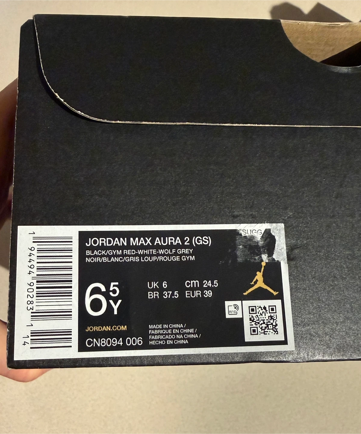 Selling a pair of Jordan Max Aura 2 (GS) in black and red, size 6.5Y. They come with the box!
