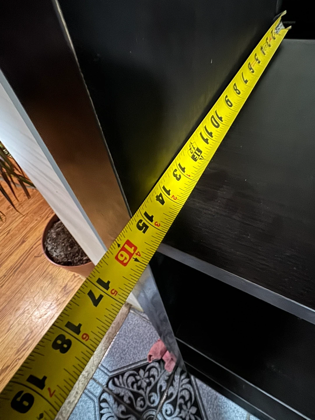 Selling a cube storage organizer with 4x3 compartments in an espresso brown color. It measures approximately 59 inches in height, 15 inches in depth, and 44 inches in width. Great for organizing your space!
