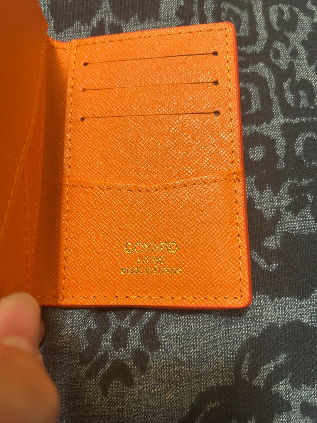 Selling a Goyard card holder in a vibrant orange color. It's in great shape and perfect for carrying your essential cards in style. Made in France