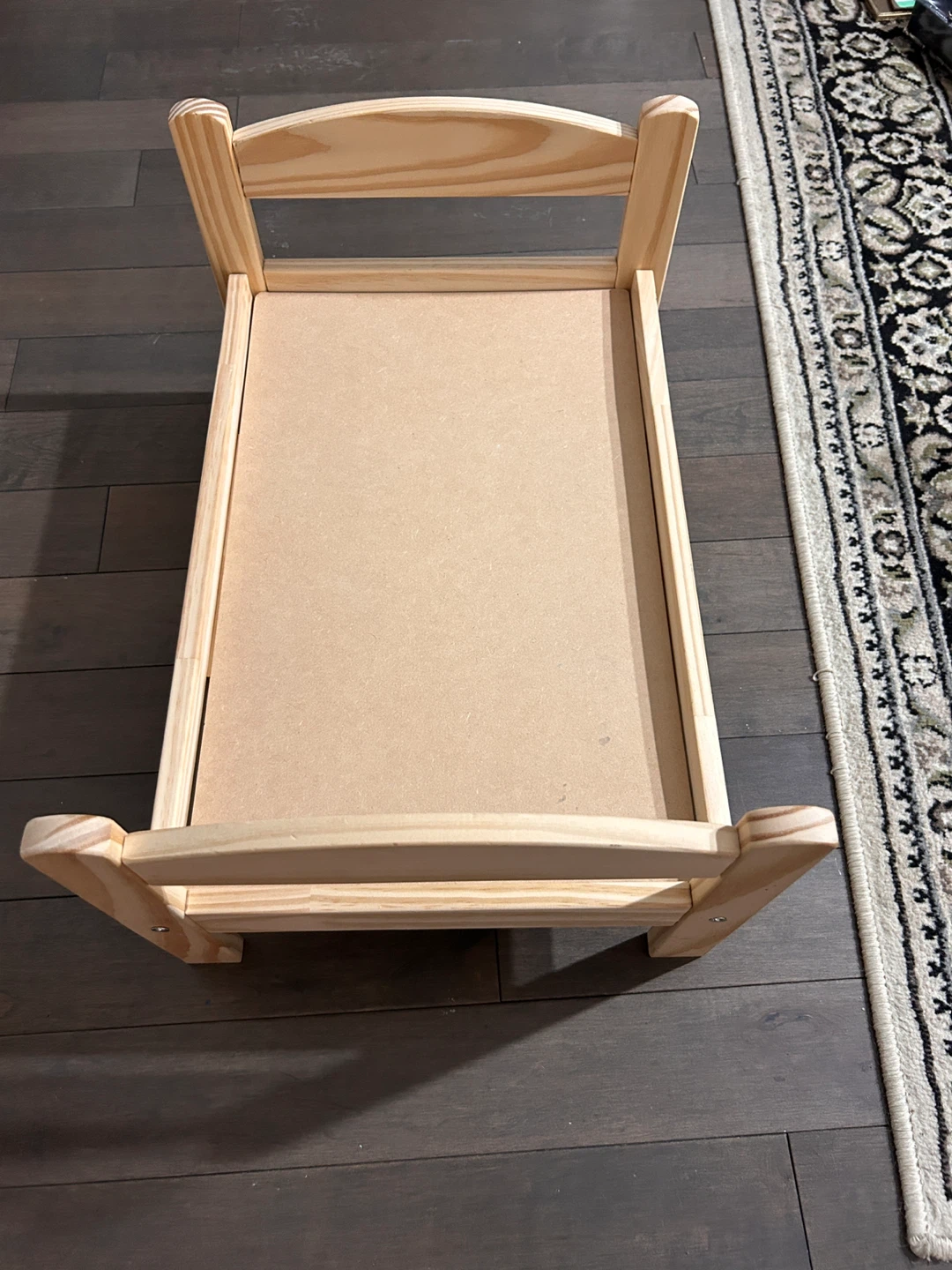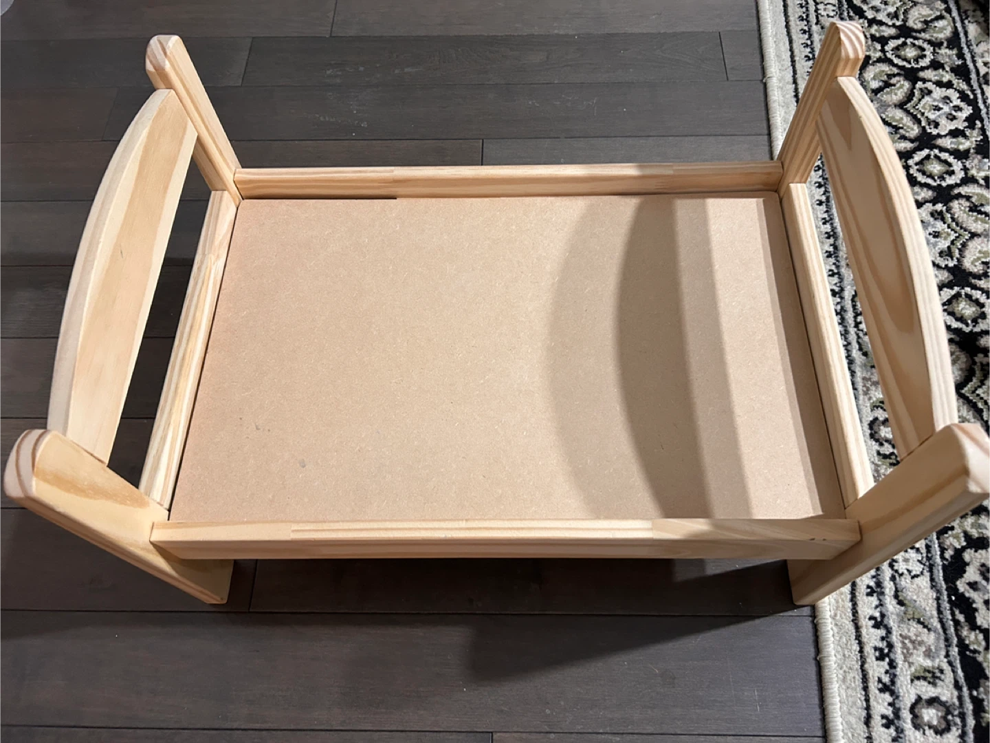 Selling a cute wooden doll bed! It's in great shape and perfect for your little one's favourite doll or stuffed animal