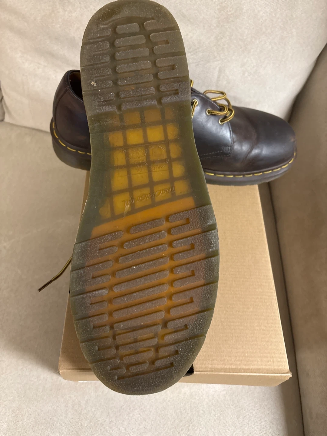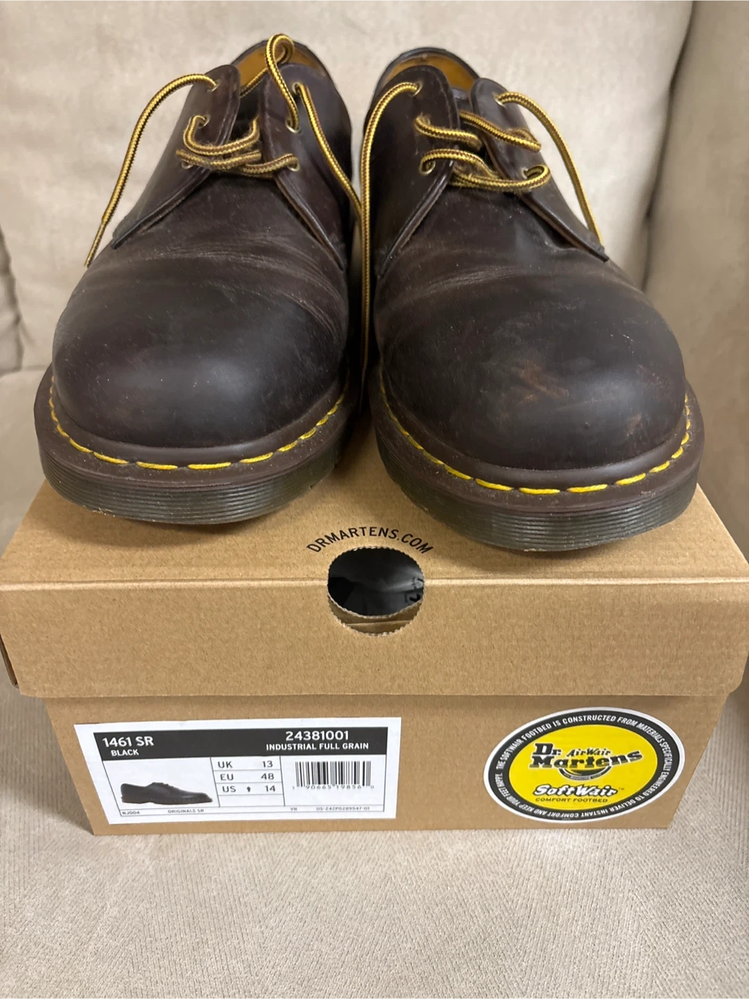 Selling a pair of Dr. Martens shoes in brown. These are crafted from industrial full grain leather. The size is US 14, UK 13, EU 48. They come with the box!