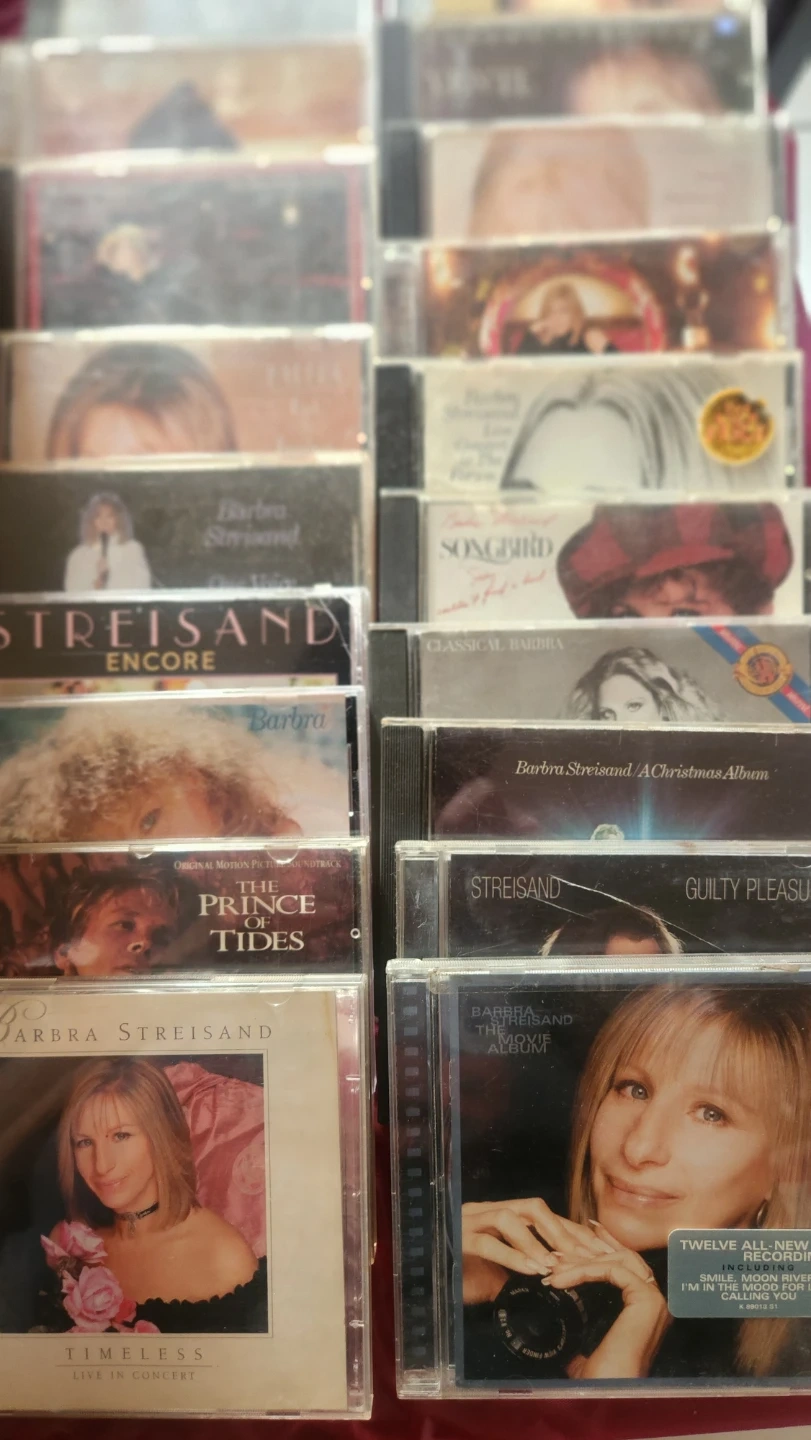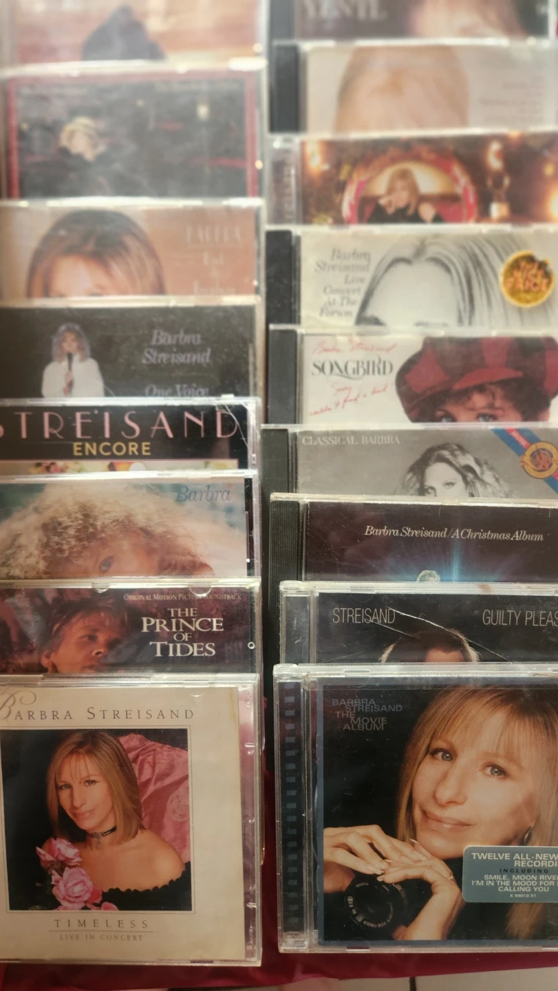 Selling a collection of Barbra Streisand CDs! They include albums like 'Timeless Live in Concert,' 'Encore,' 'The Prince of Tides,' 'Songbird,' and 'Guilty Pleasures'. Perfect for any fan!