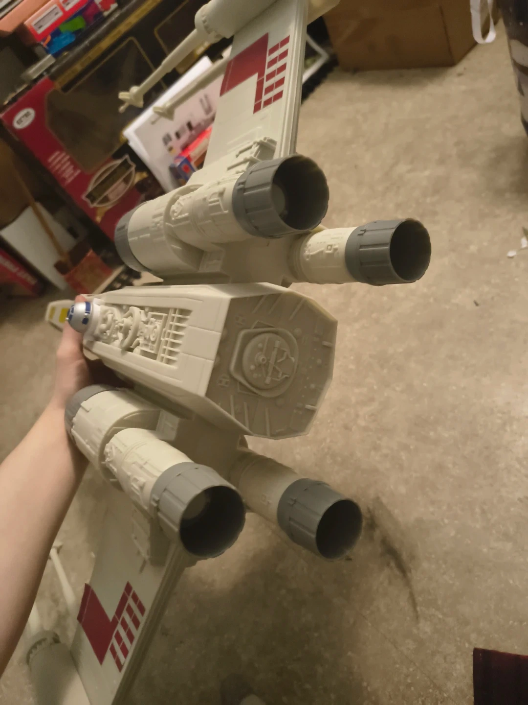 Selling my old Hasbro X-wing, it's rather large and taking up too much space. I no longer have the box but the X-wing has all its parts, some stickers are peeling and need more adhesive, and one of the cockpit window stickers is missing a bit of the front, aside from that she's in overall good condition!