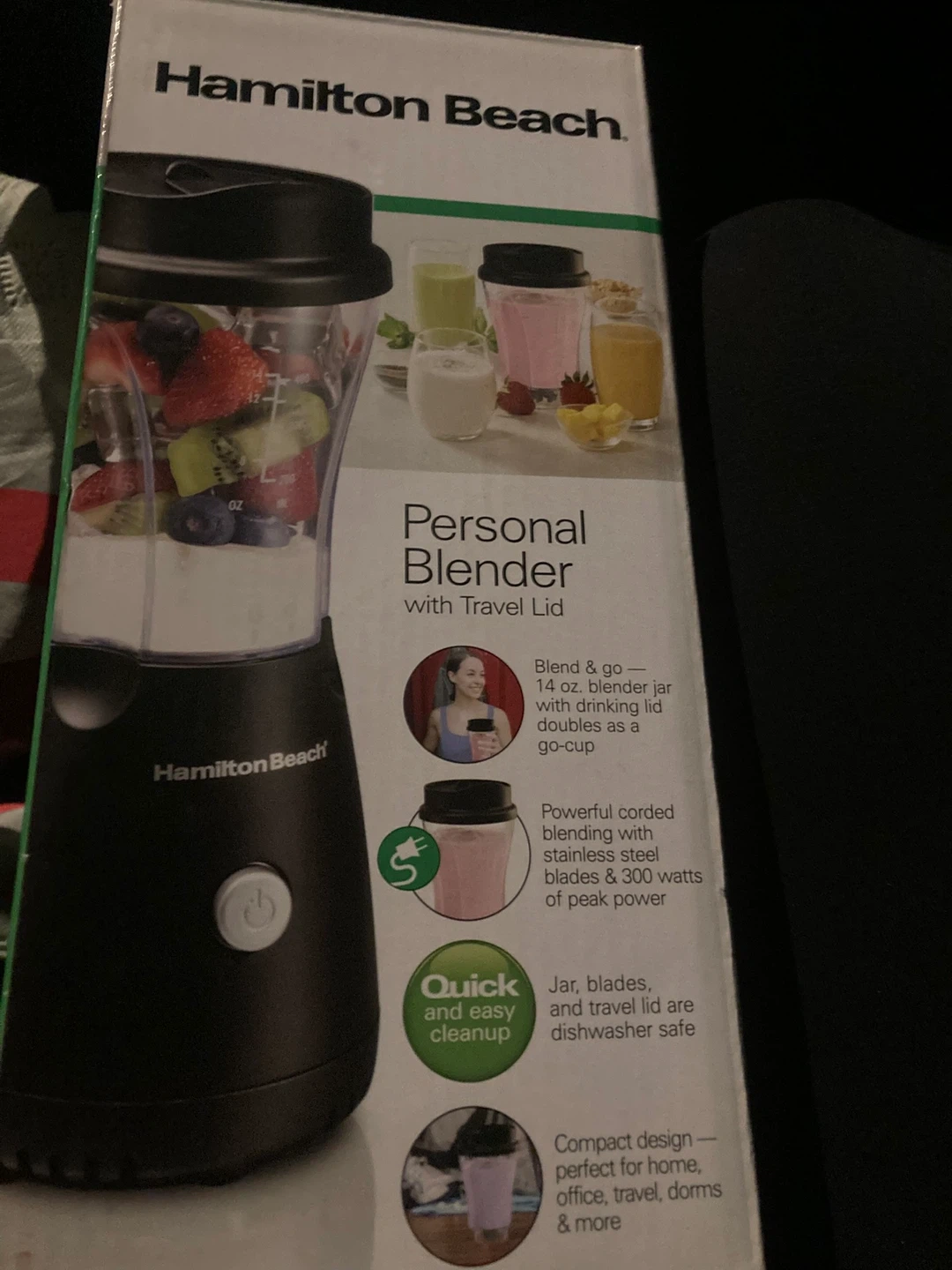 I'm selling a Hamilton Beach Personal Blender with Travel Lid. It has a 14 oz blender jar with drinking lid that doubles as a go-cup.