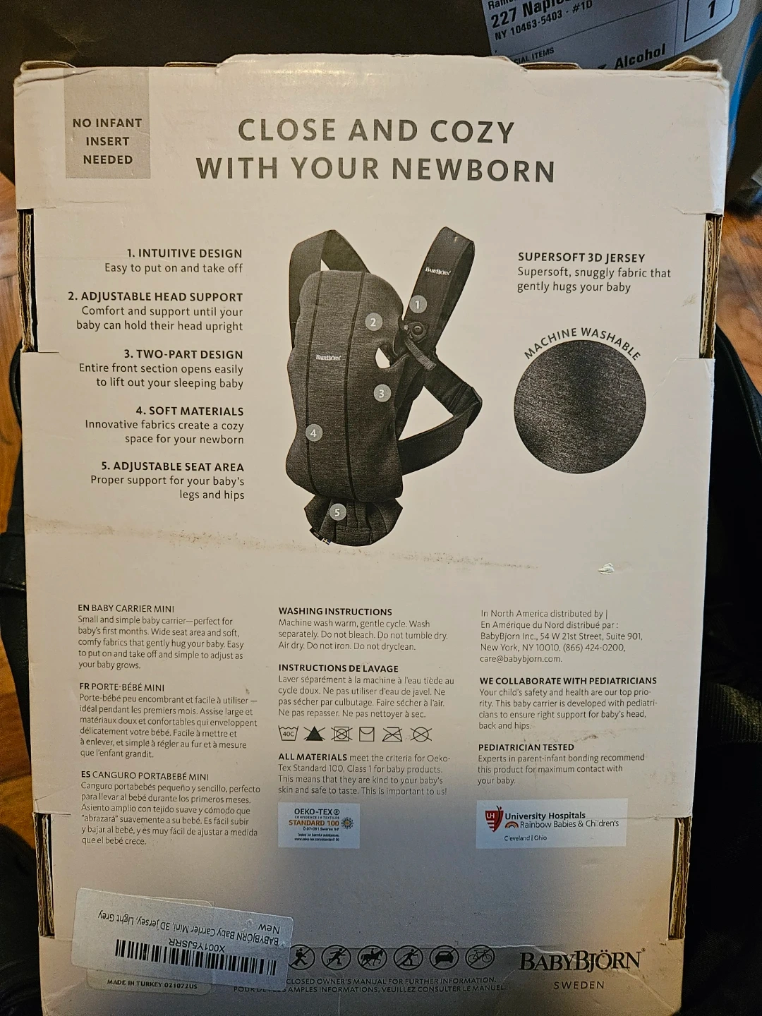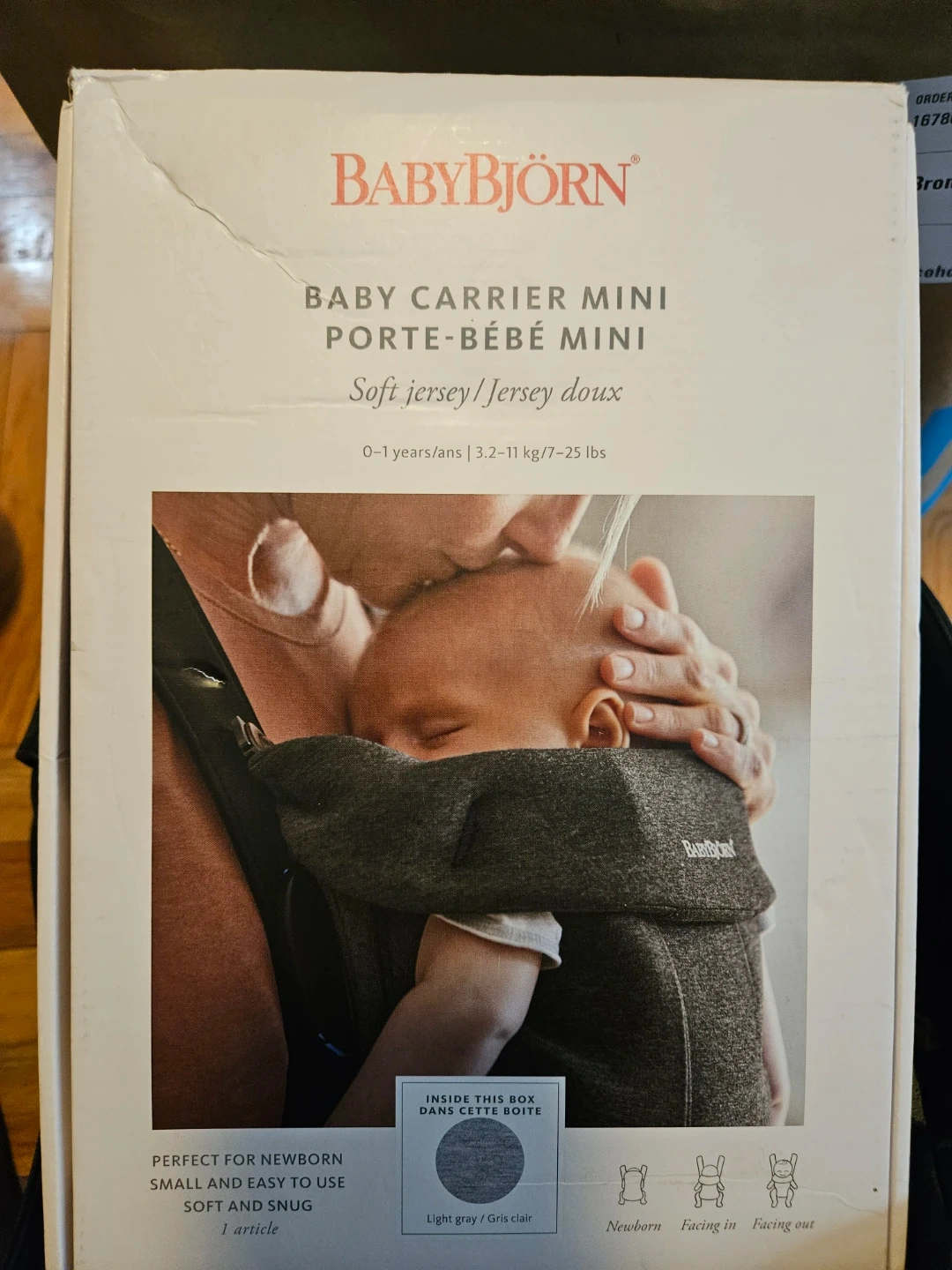 This BabyBjörn Baby Carrier Mini is made from soft jersey fabric. It's designed for newborns and babies 0-1 years old, weighing 7-25 lbs. It's adjustable for a comfy fit and supports your baby's head and hips.
