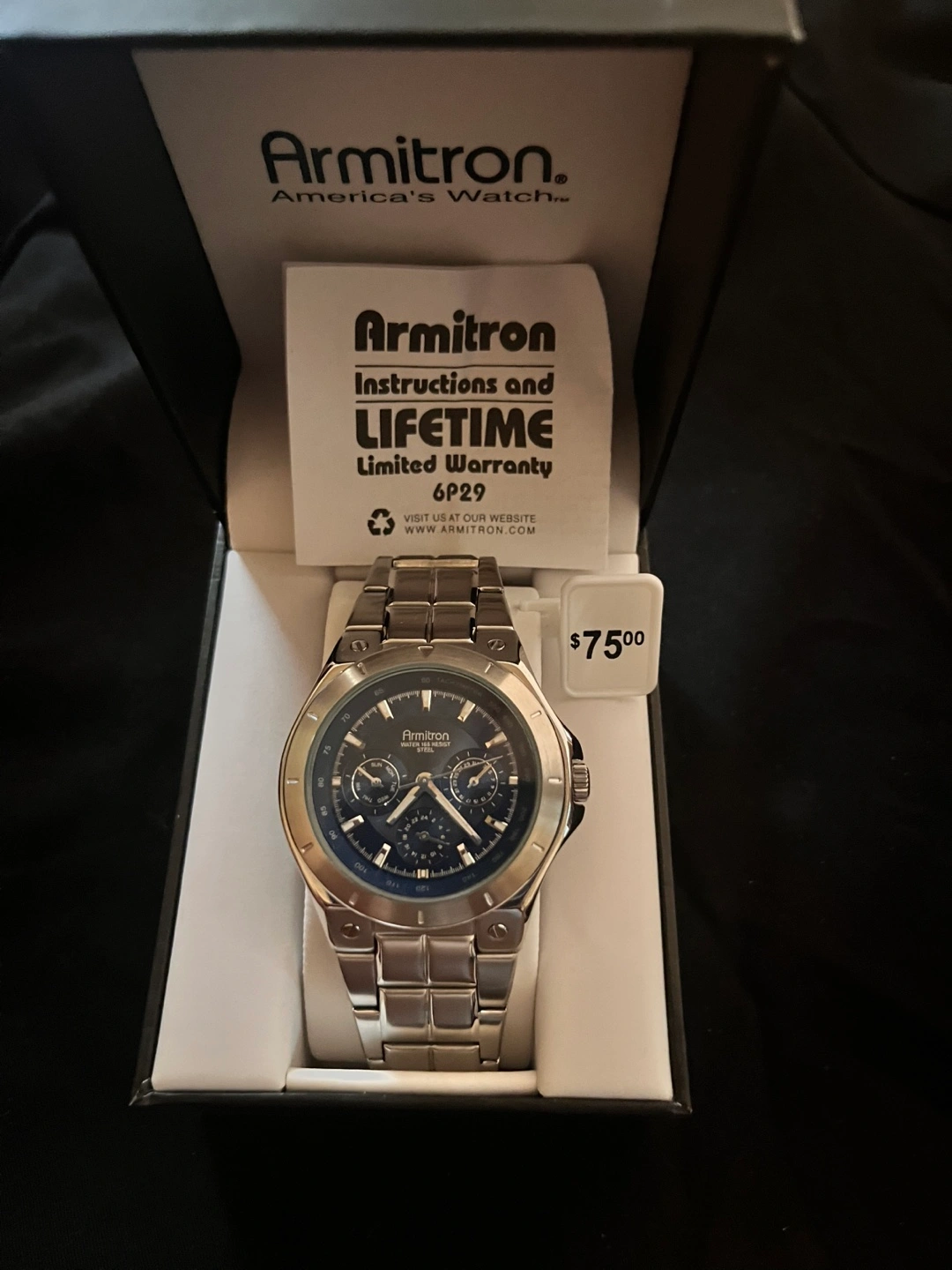 Selling an Armitron men's watch! It comes with the original box and instructions and warranty