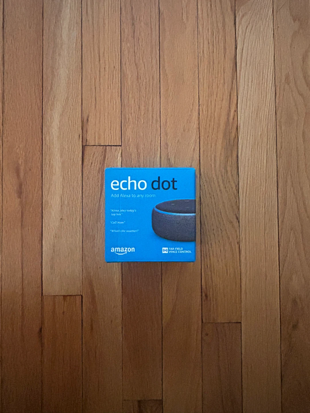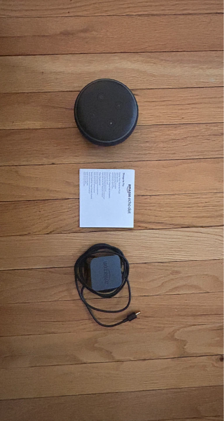 Amazon Echo Dot (3rd Gen) with Alexa. It's a smart speaker with far-field voice control. Includes Echo Dot device, power adapter, and quick start guide. Great for adding Alexa to any room!